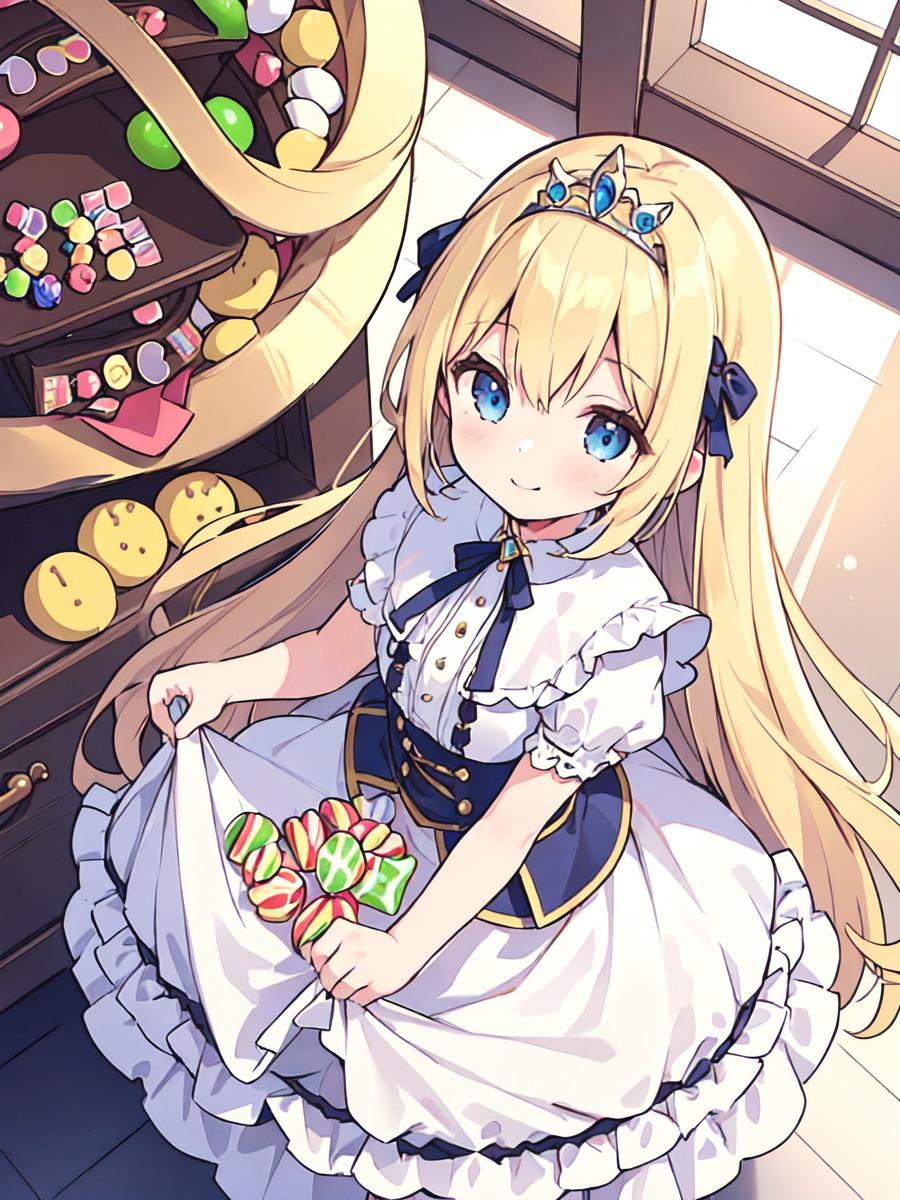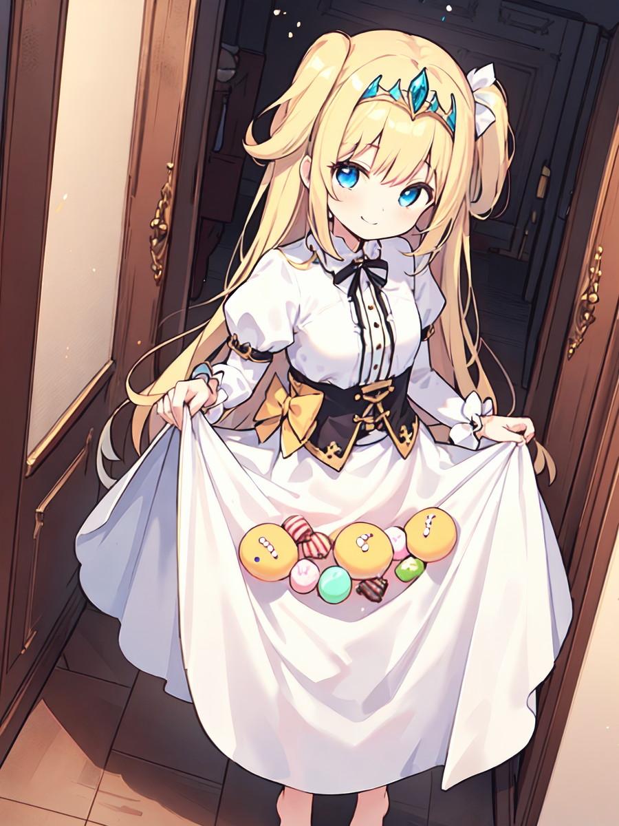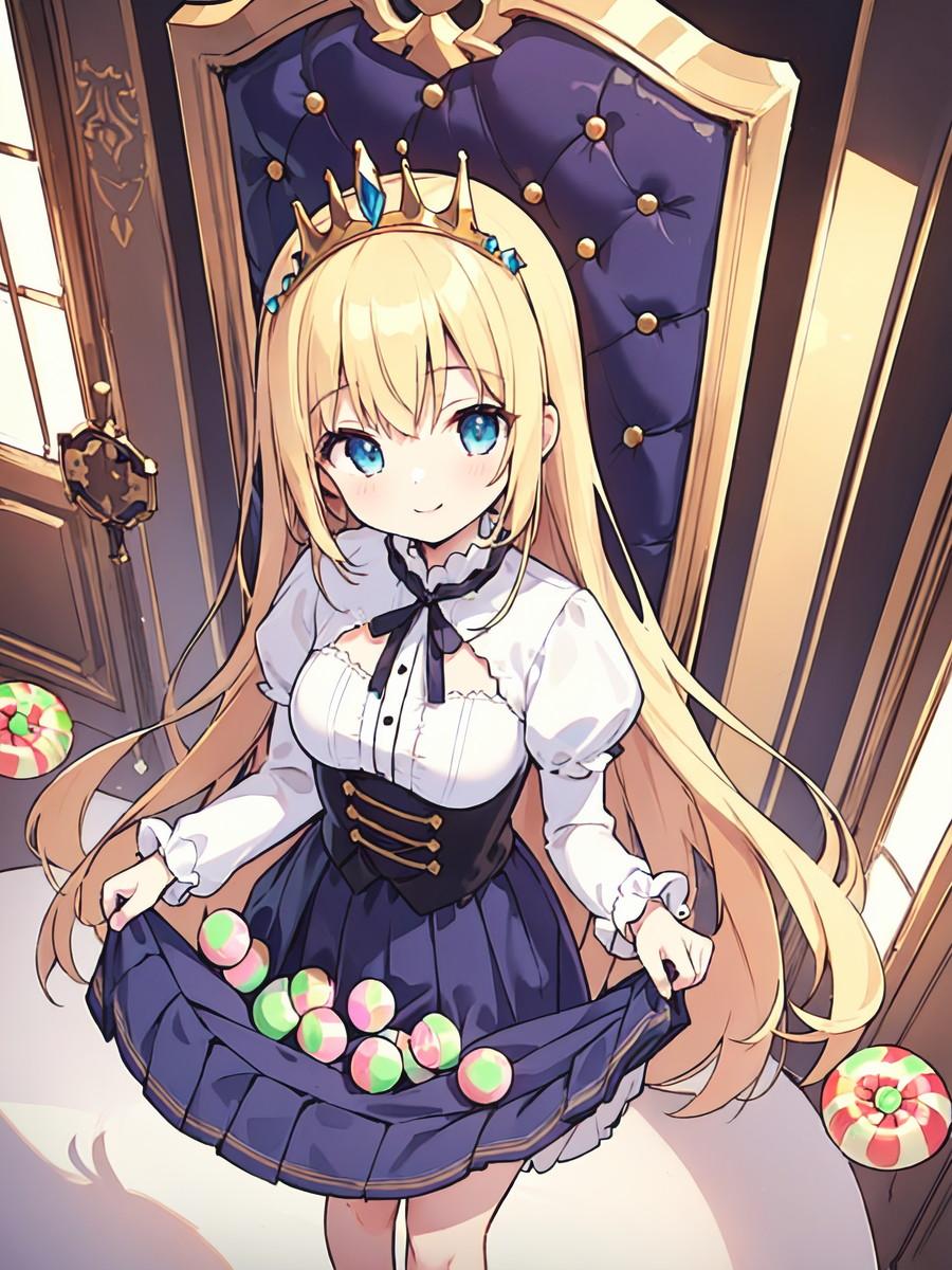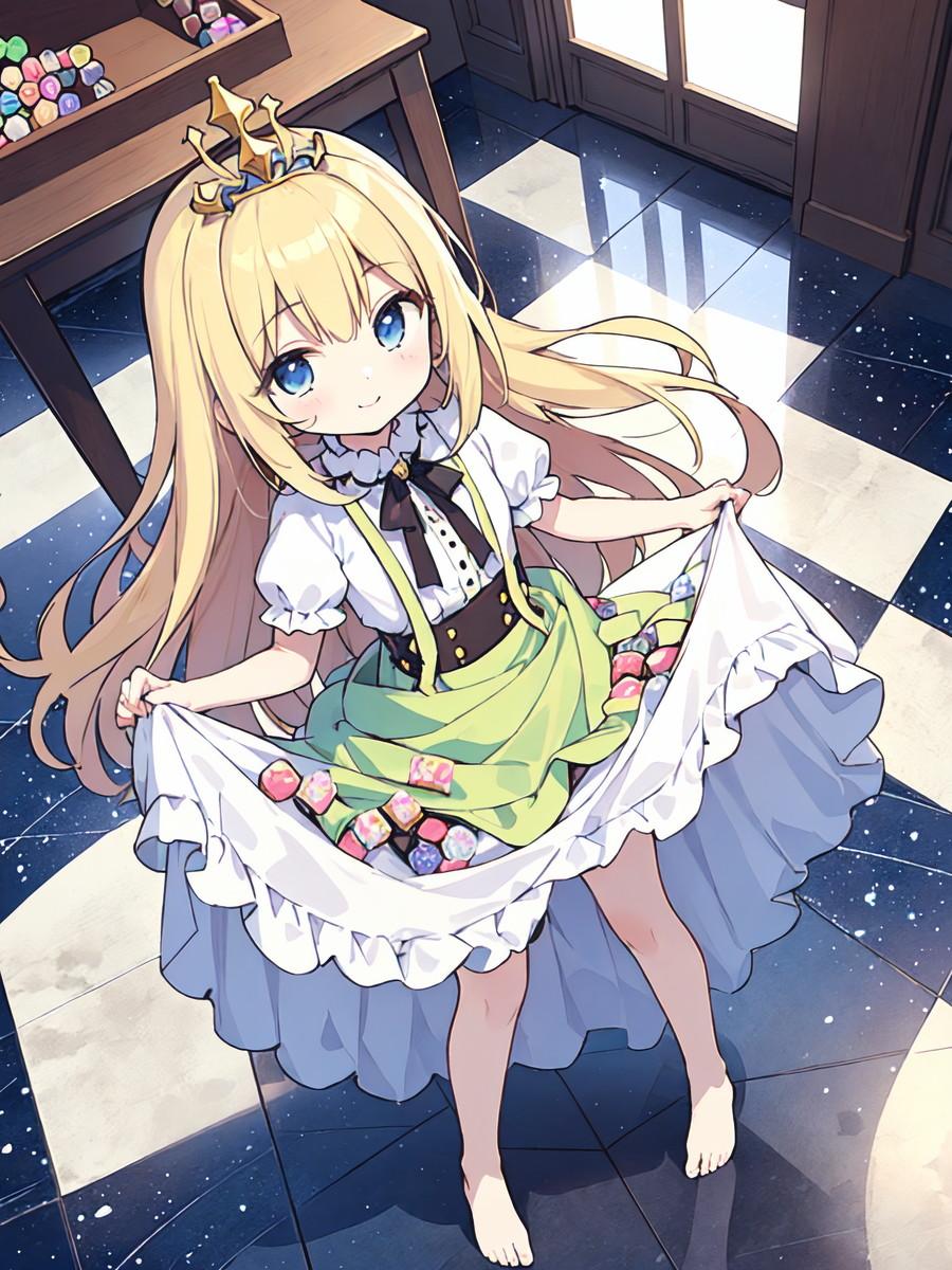 つまんで引っ張ったスカートの上にキャンディをちゃんと乗せるのがStableDiffusionではめっちゃ苦労した