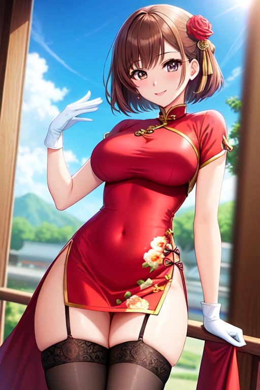 1girl,dark eyes,brown hair,bobcut,huge breasts,