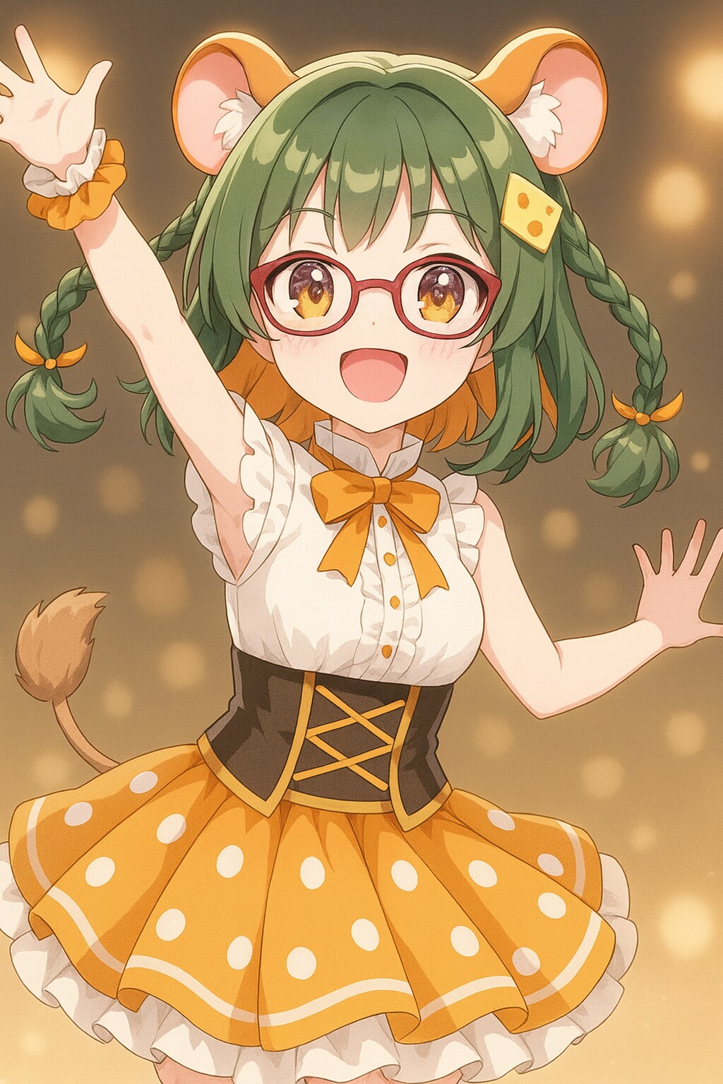 082さんのフロルちゃんはいつもの自分の環境で生成して、ChatGPTで三つ編みとメガネを付けてもらい、再度i2iをかけました。(4枚目、5枚目)