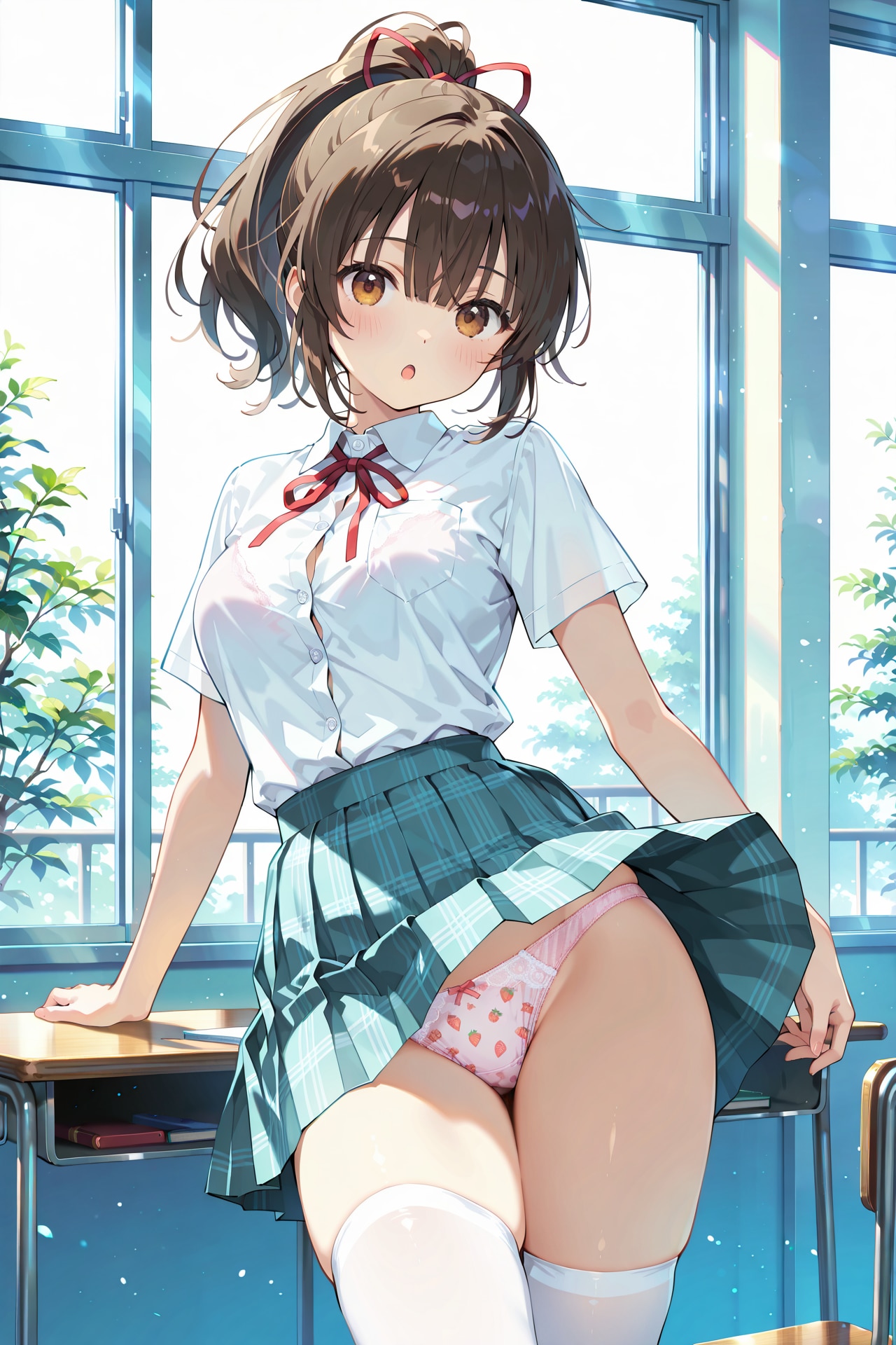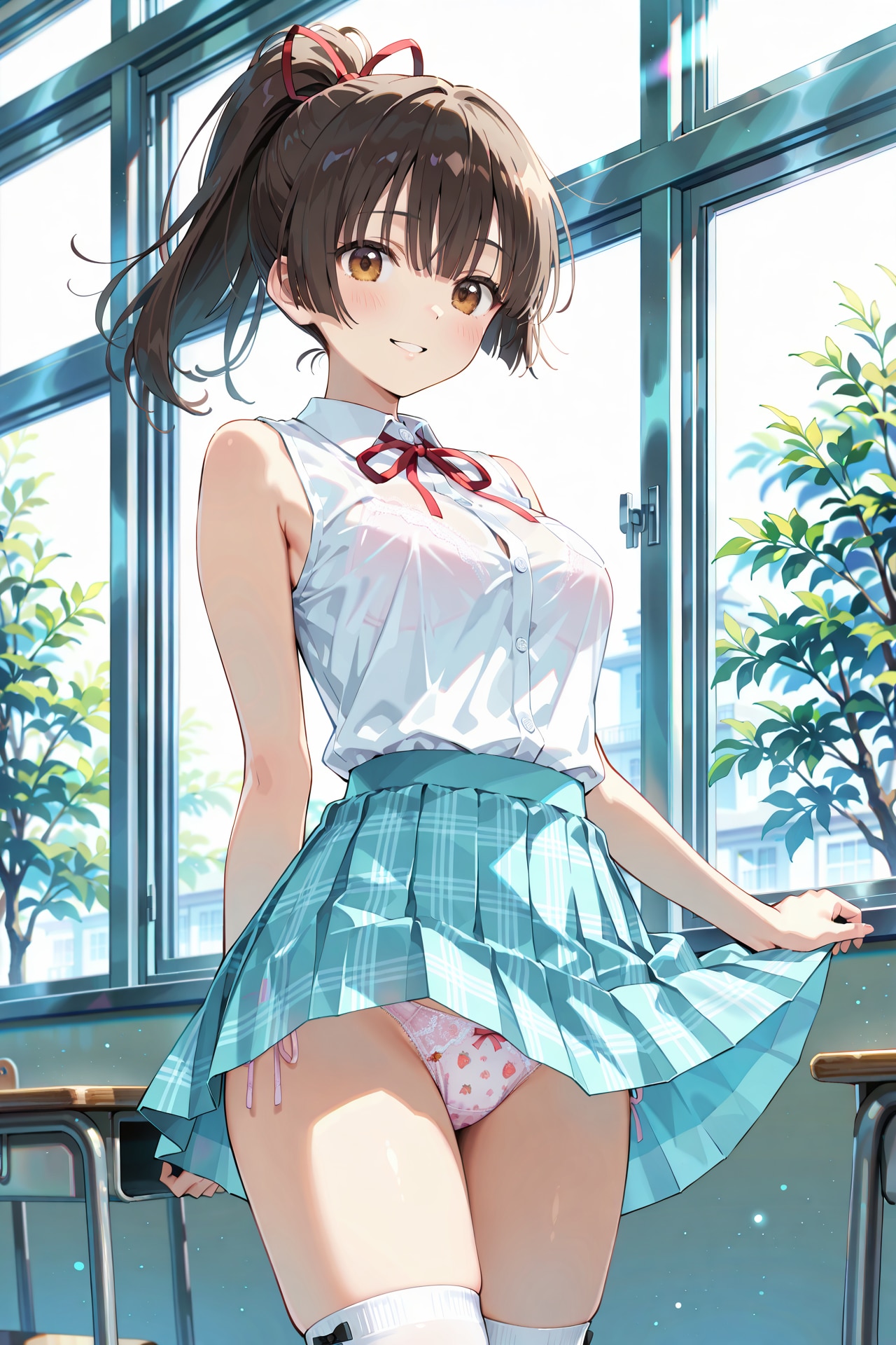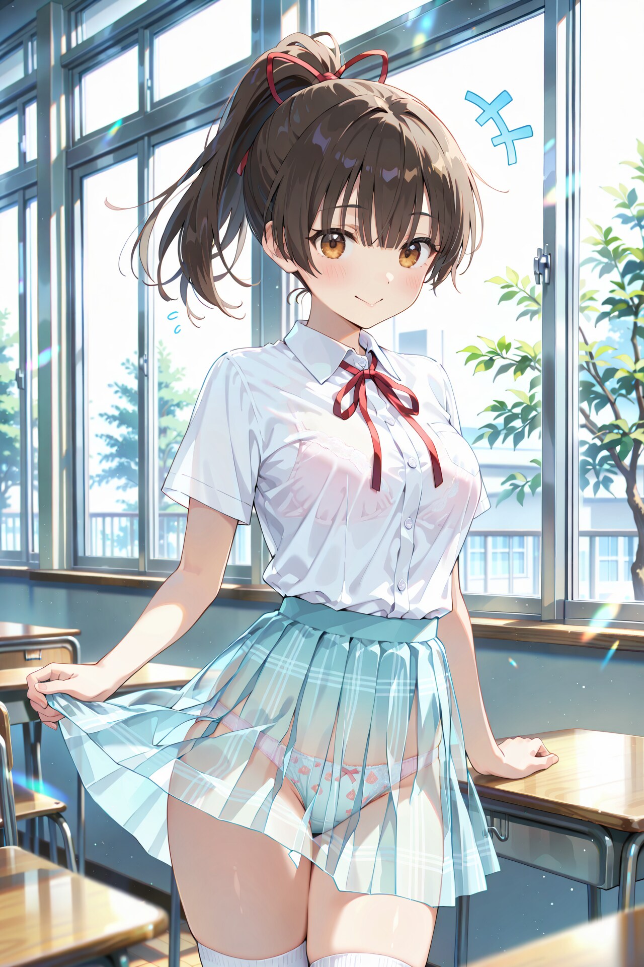 校舎内で、下着(主にぱんつ)が透けて見えている服での撮影会です。