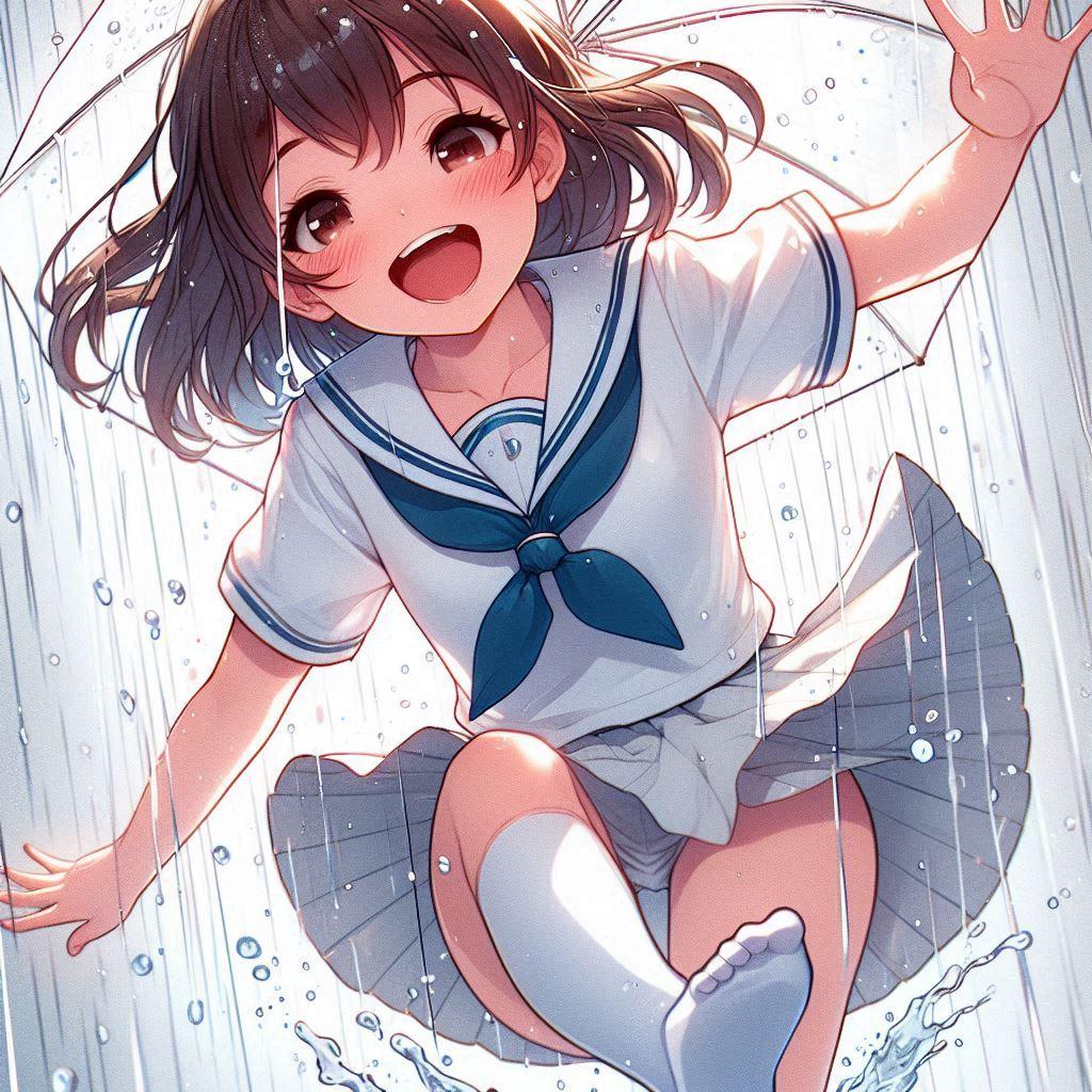 梅雨だってパンチラ!(Copilot)