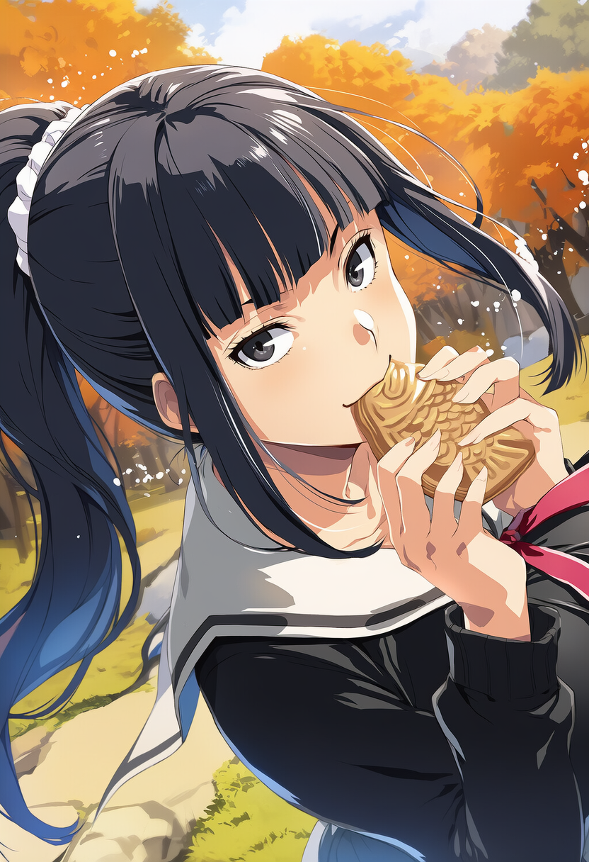 holding taiyaki with double hands:たい焼きを両手で持つ