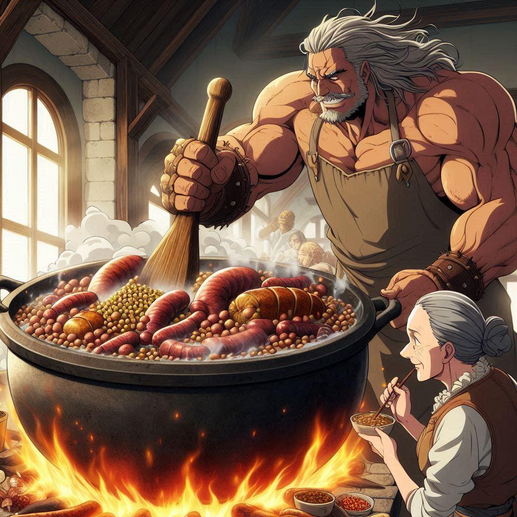 ルイージの酒場では、主人が威勢良く声をあげ。厨房では深鍋で備蓄の豆や雑穀、豚の腸詰や鴨肉が煮込まれる。