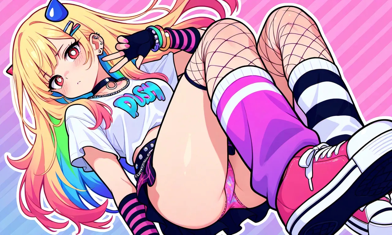 jacket partially removed, heart in eye, burnt clothes, holding fishing rod, kanji, doujin cover, pentagram, tape gag, adjusting headwear, red socks, friends, cloud print, coke-bottle glasses, oral invitation, competition school swimsuit, barbell piercing, gradient legwear, prisoner, blood on breasts, wind chime, carrying over shoulder, tape measure, flaming weapon