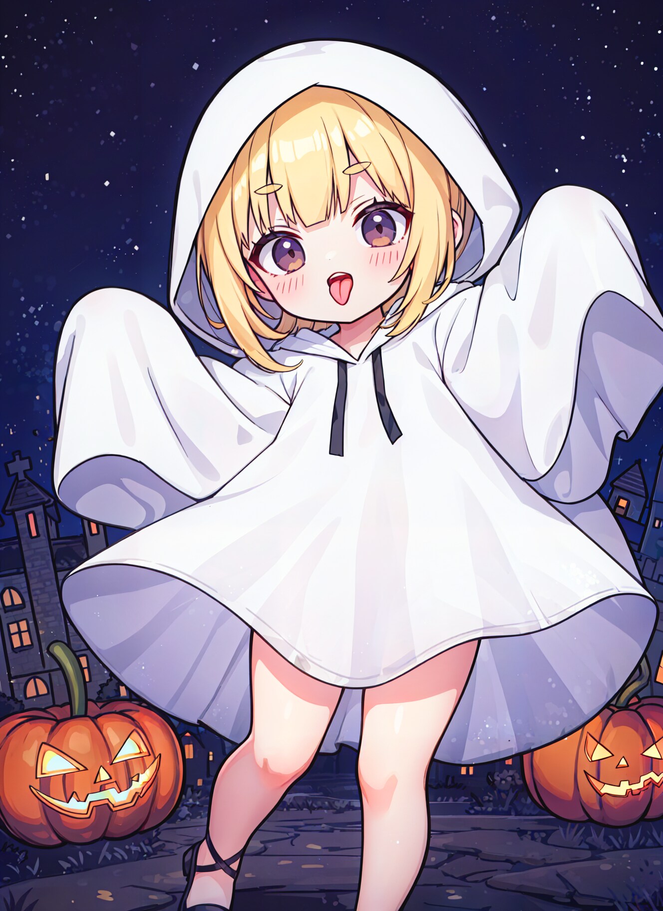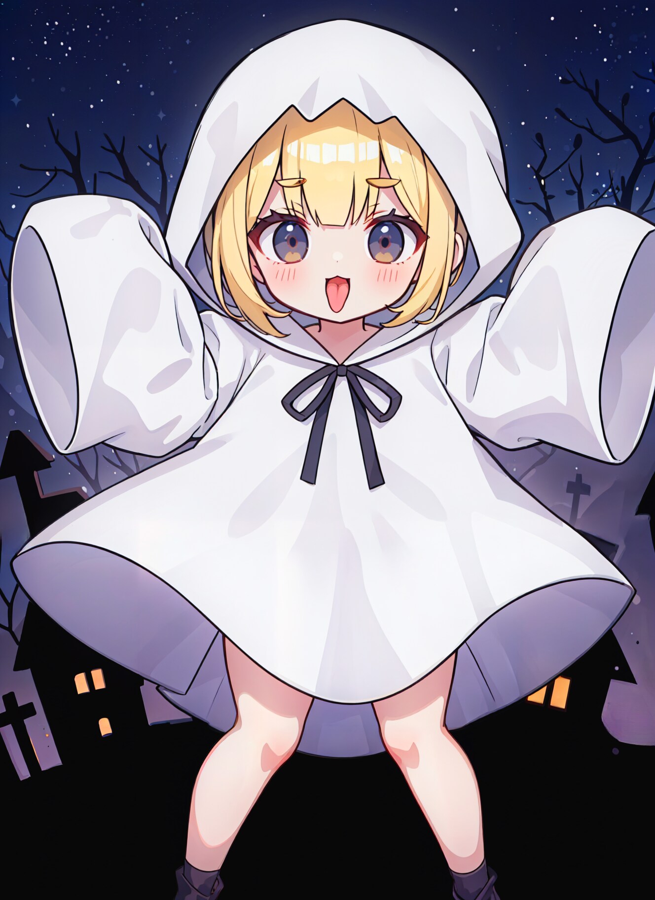 メスガキLoRAに「tongue out」であっかんべ感を出し、萌え袖LoRAで手が出てこないようにしてます。