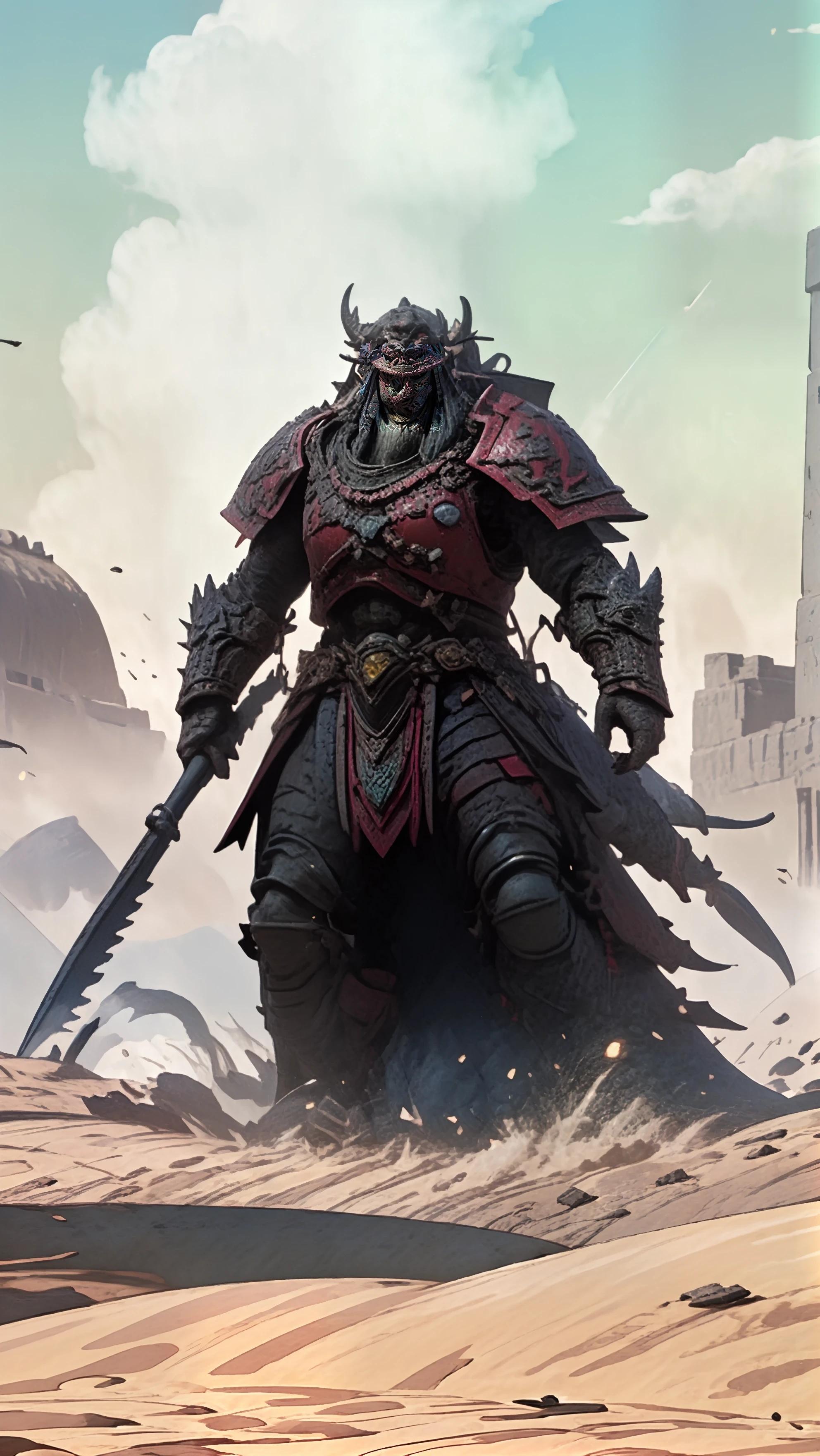 例=古代、武将、上級武将、甲冑、篭手、胸鎧(イメージした比喩表現でも大丈夫)腰部の前垂甲冑、膝、肘、スネまでFullアーマー化)(何かしらのイメージから〜style,)