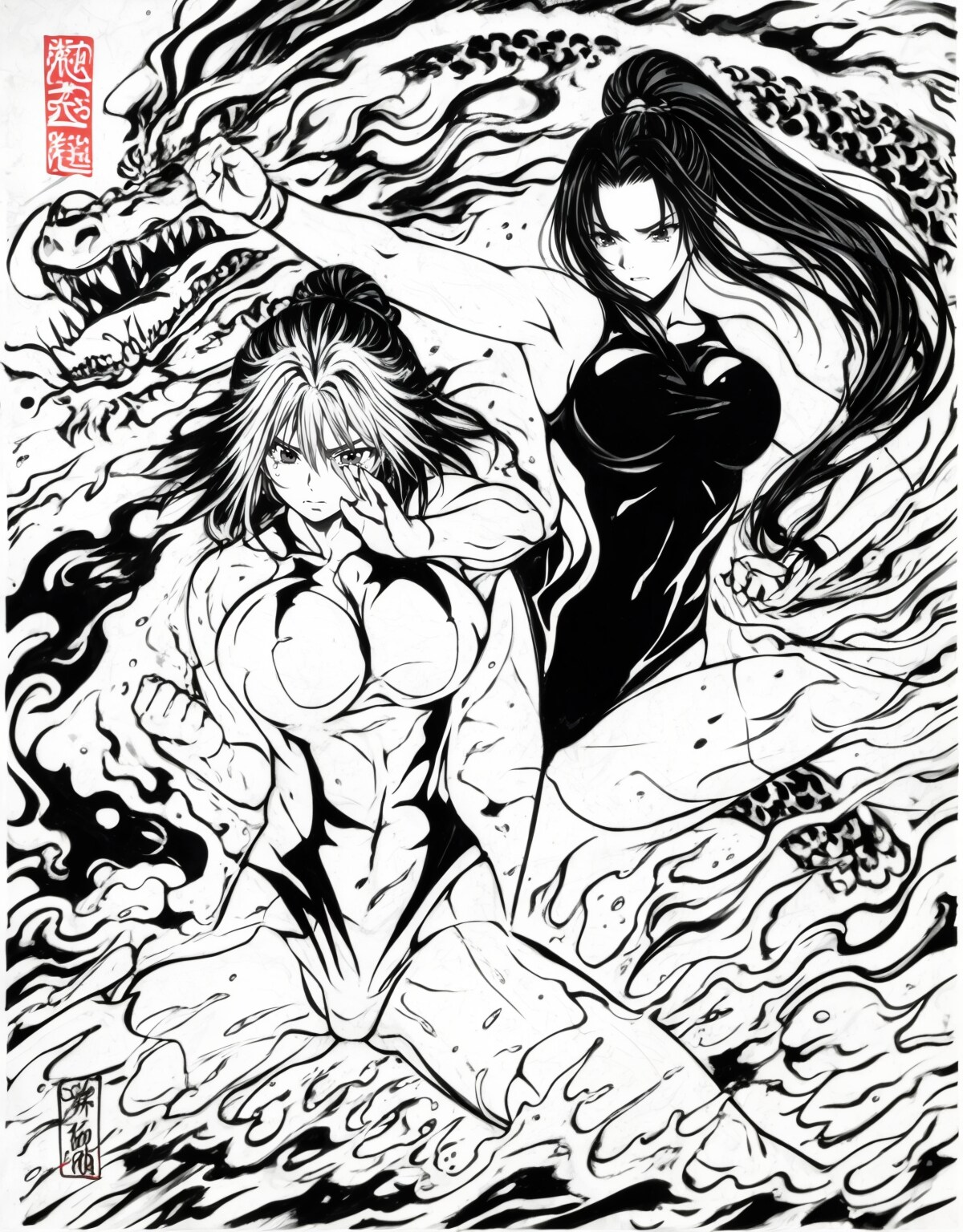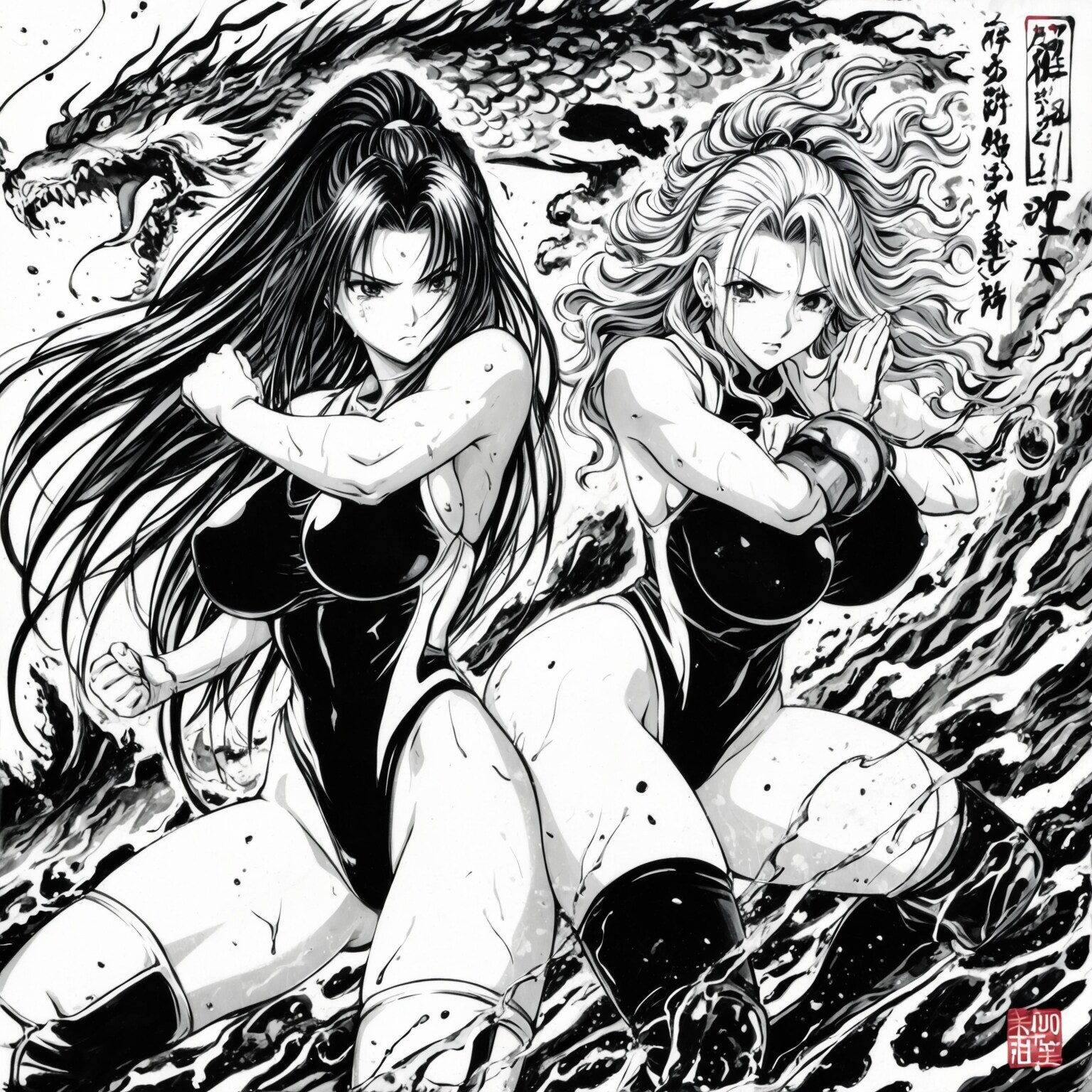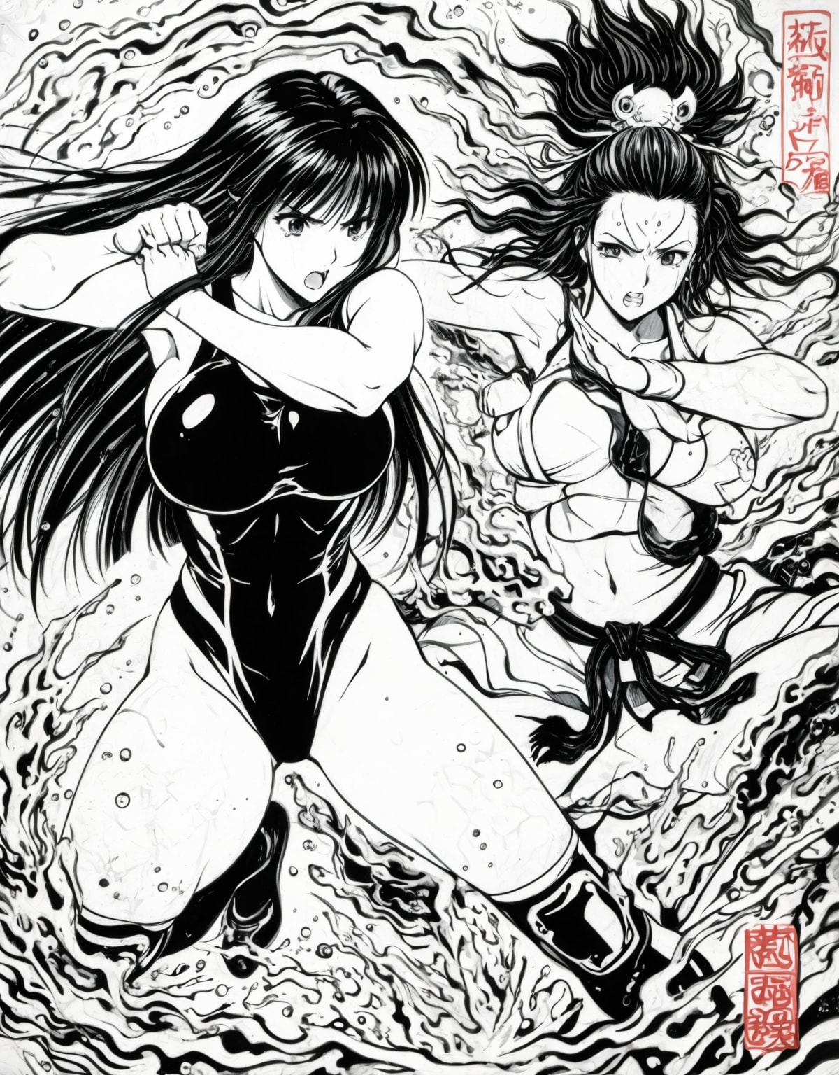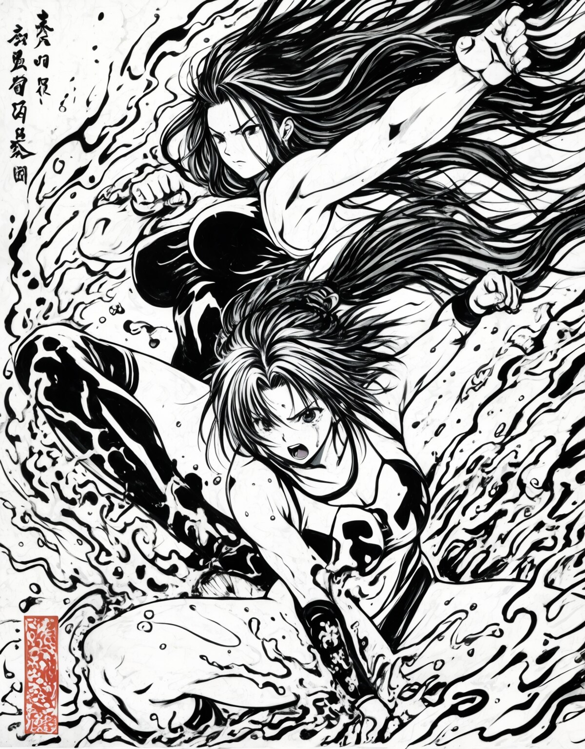 日本画女子プロレス!(水墨印象画風?)