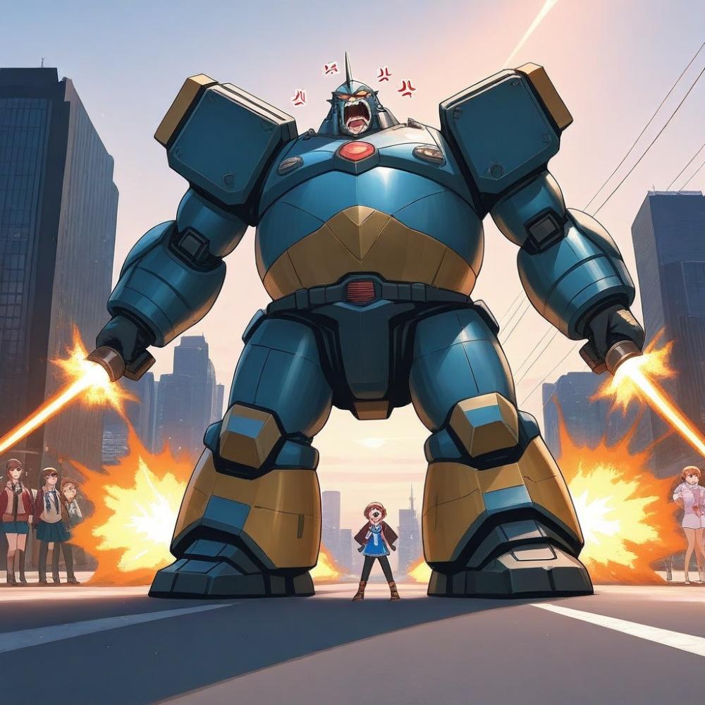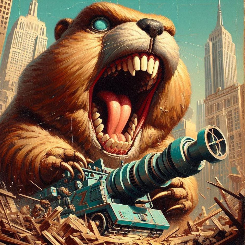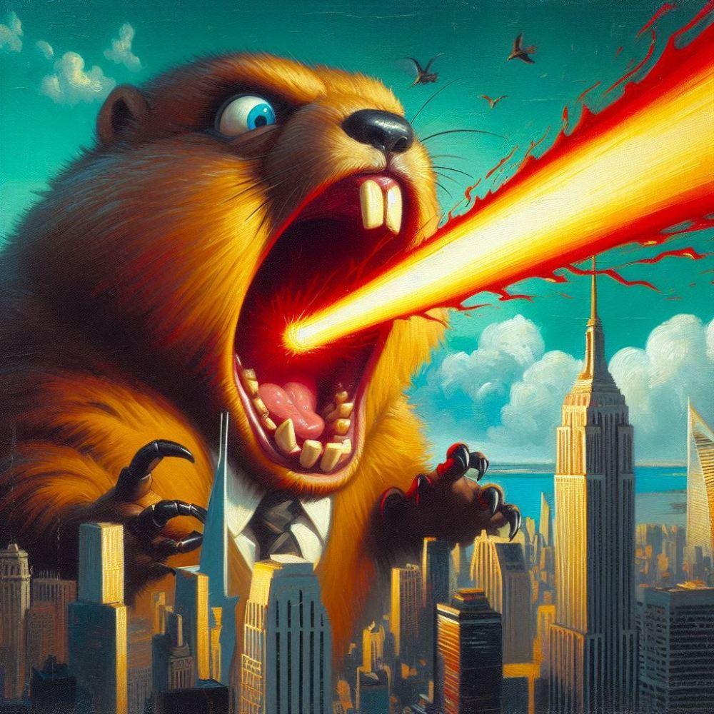 油絵アニメ風、怒りの大怪獣マーモット&メカマーモット、ビーム
