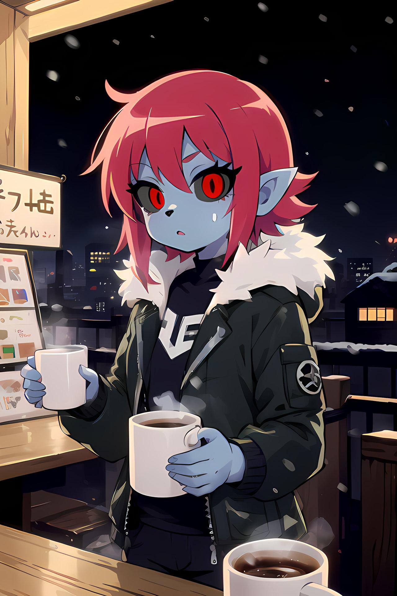 🔵…副業帰りのコーヒータイムだよ。仕事帰り。