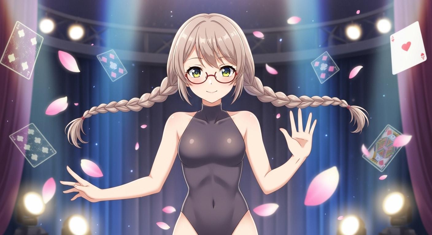 悪の三つ編み眼鏡っ娘が、このような口上を述べるとシンプルなデザインのハイレグレタードは、みるみるうちに形状が変わり、マジシャンガール衣装へと変化を遂げた。