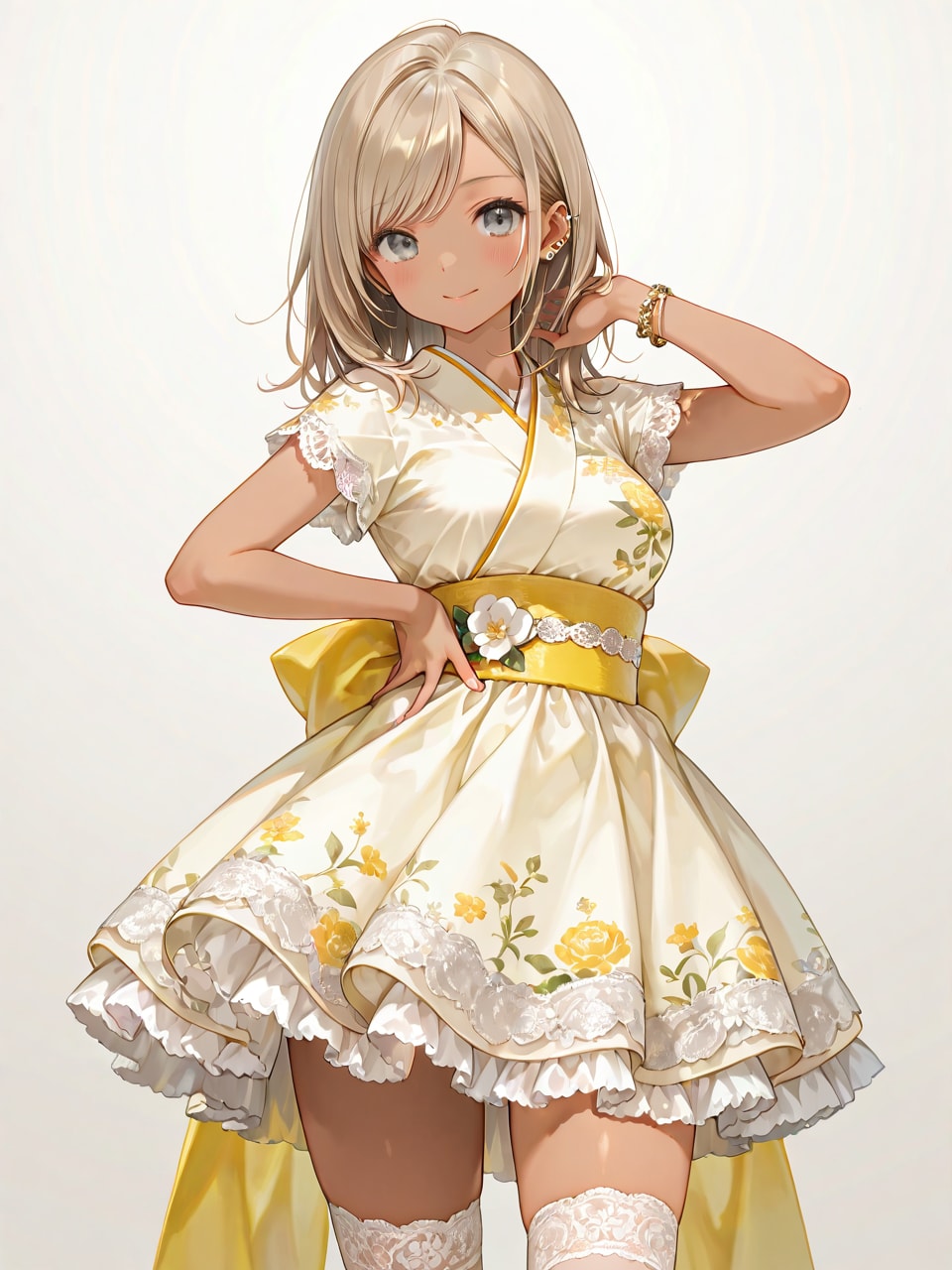 この子は可愛いドレス着せたいと思って、でも帯を和服っぽくしつつ大きなリボンをつけて可愛いを全面に出してみました‼️正直一番のお気に入りだけど、解釈違いもしれない🤭