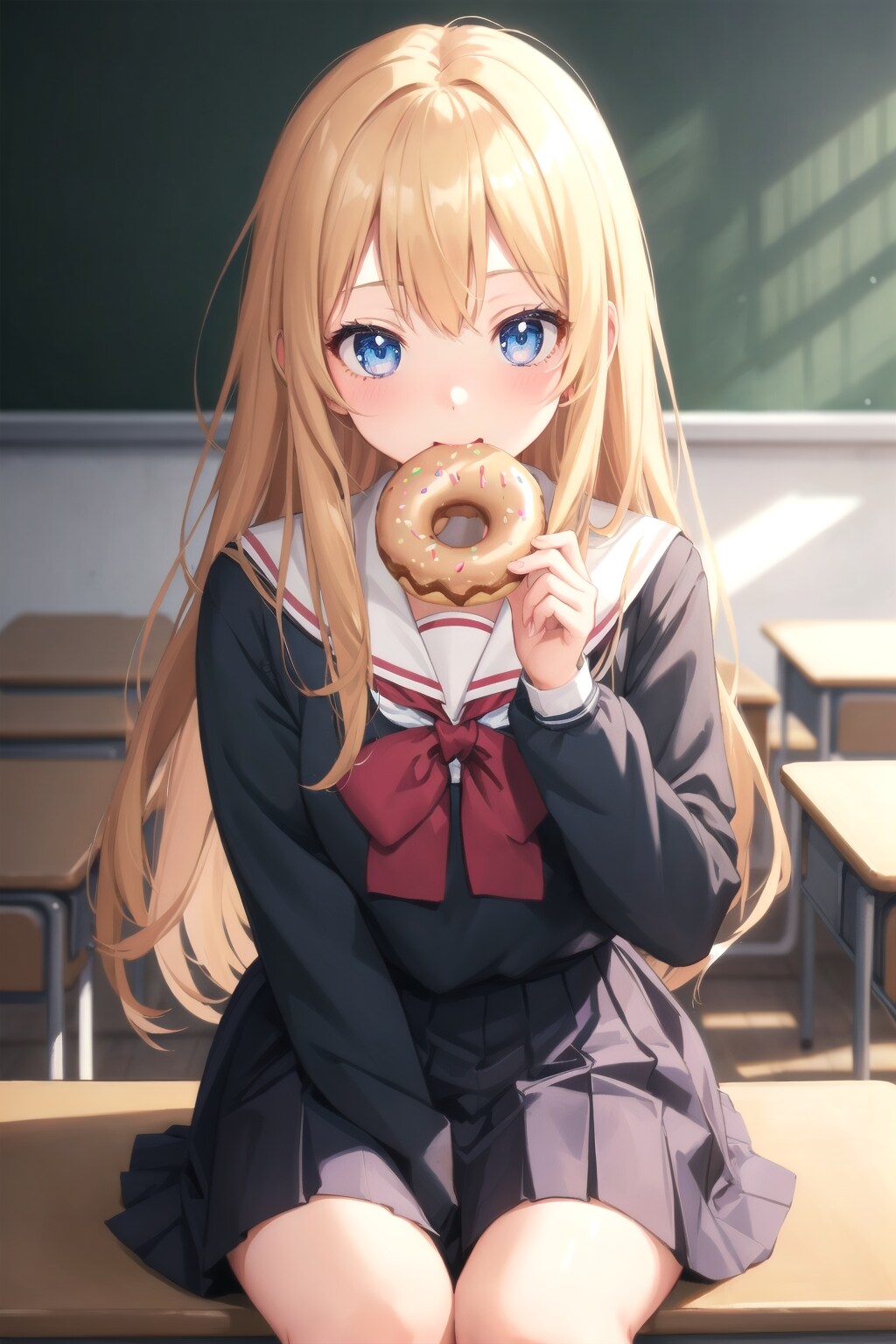 今日のちちぷい生成はV4Bでランチにドーナッツ食す女子高生!