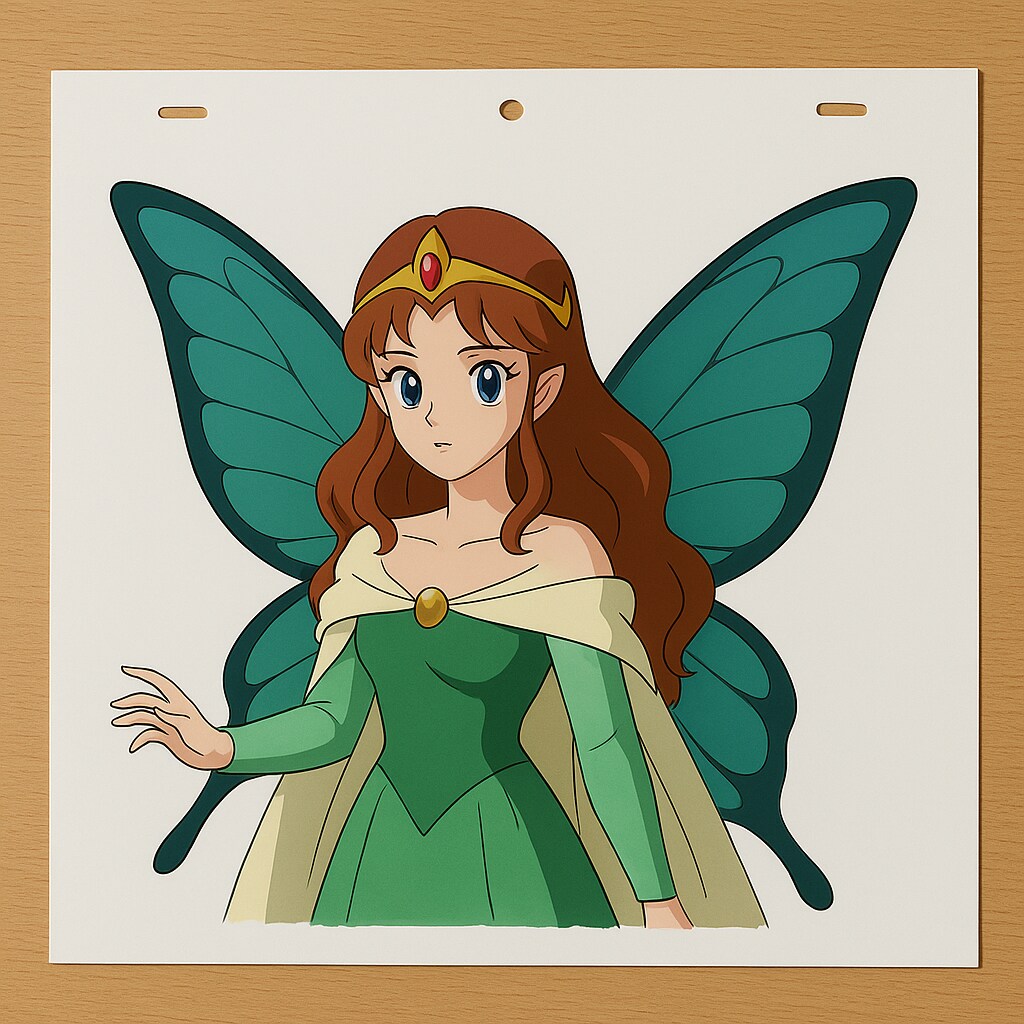 セル画風の表現で妖精女王をちちぷい生成したら90年代アニメ風の顔になった。