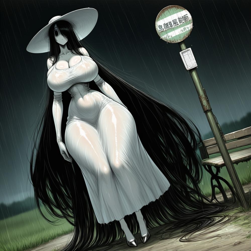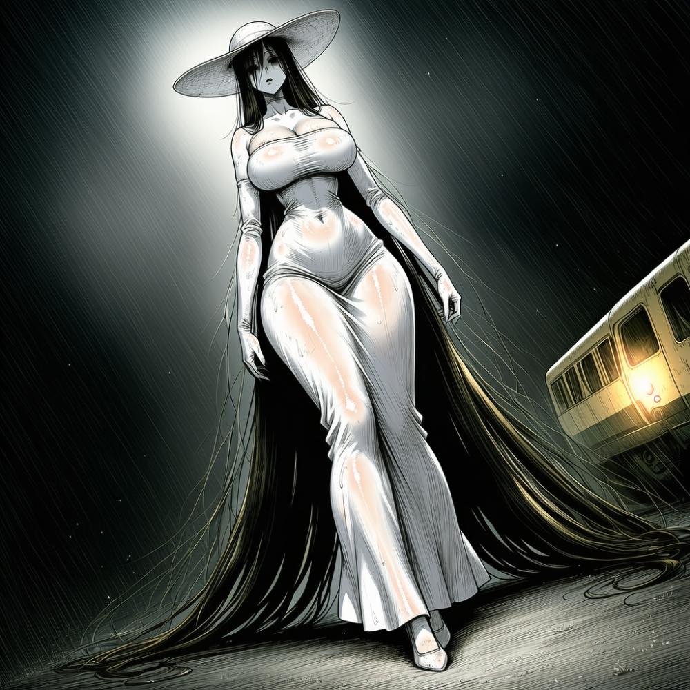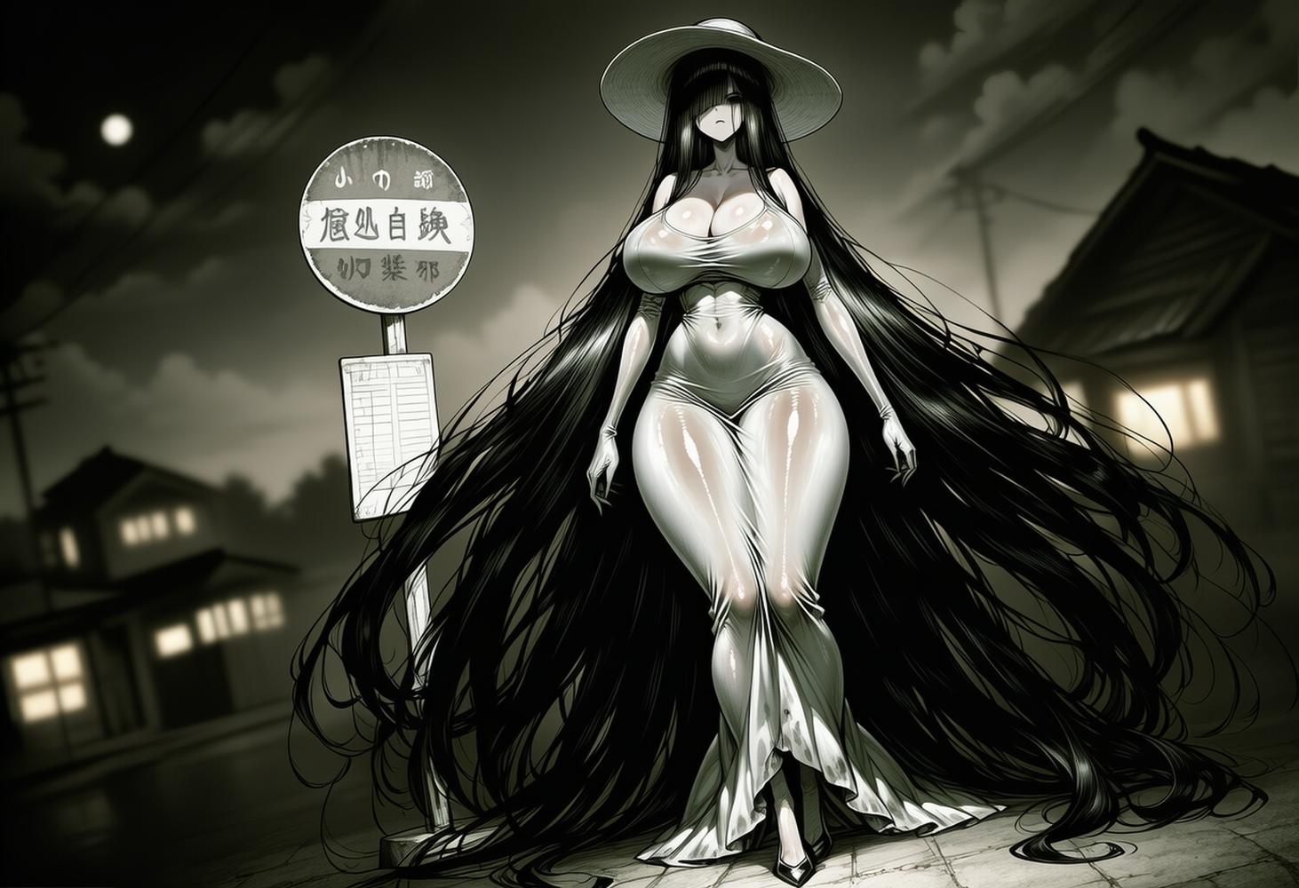 大正浪漫ハイカラ着物コスプレ人妻&ホラー白黒絵画八尺様