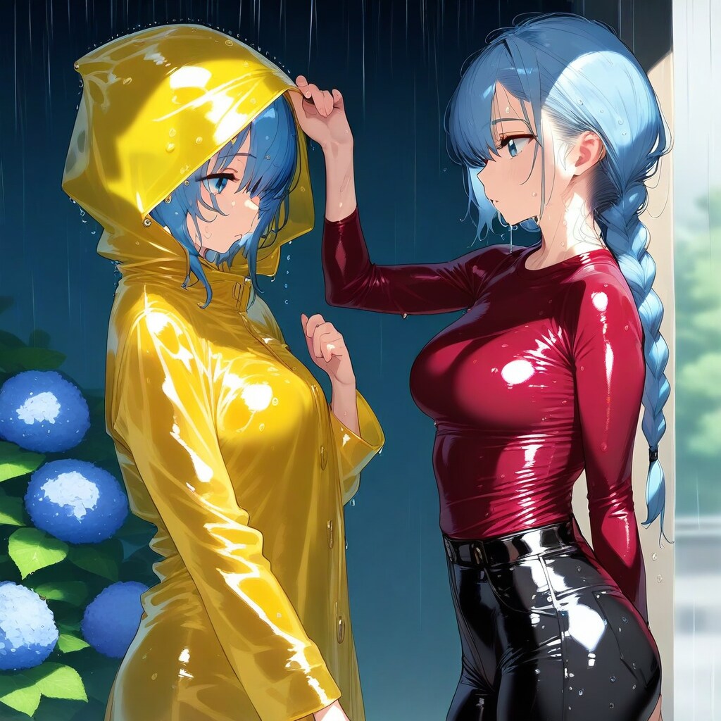 レインコートの下に服を着てもらうのが難しいので、レインコートに色を付けたりしてWAVEにも全年齢イラストを描いて貰えました