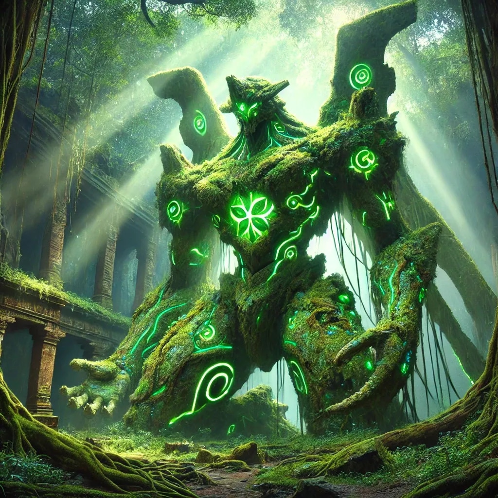 エルフ族が最後の切り札として、森の神殿に眠るロストテクノロジー――緑色植物生体細胞と融合したゴーレムを目覚めさせた。