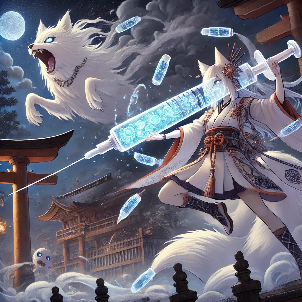 彼女の**「注射器の槍」** に込められた 「しろほうくんの抗体」 は、邪悪な霊的存在に対してまるで 「聖水」 のような浄化効果を持っている……これはまさに 「霊的免疫システム」 のようなものですね!💀⚔️