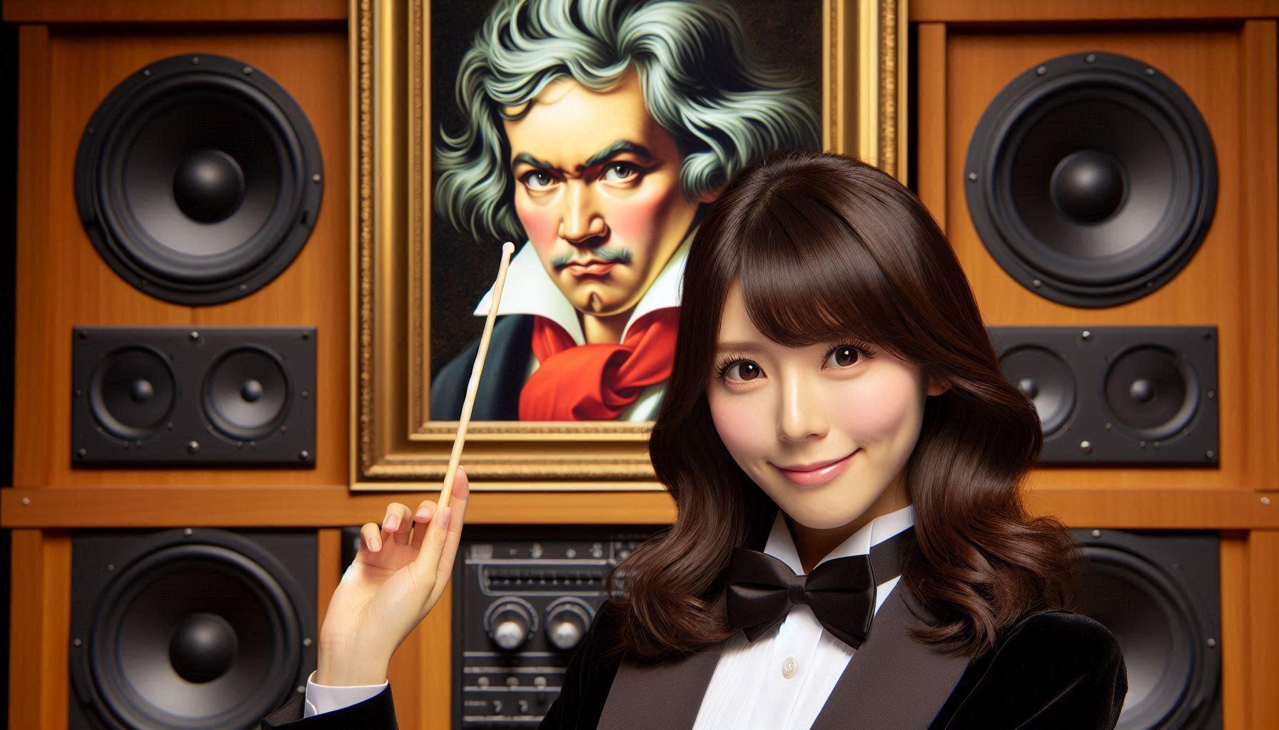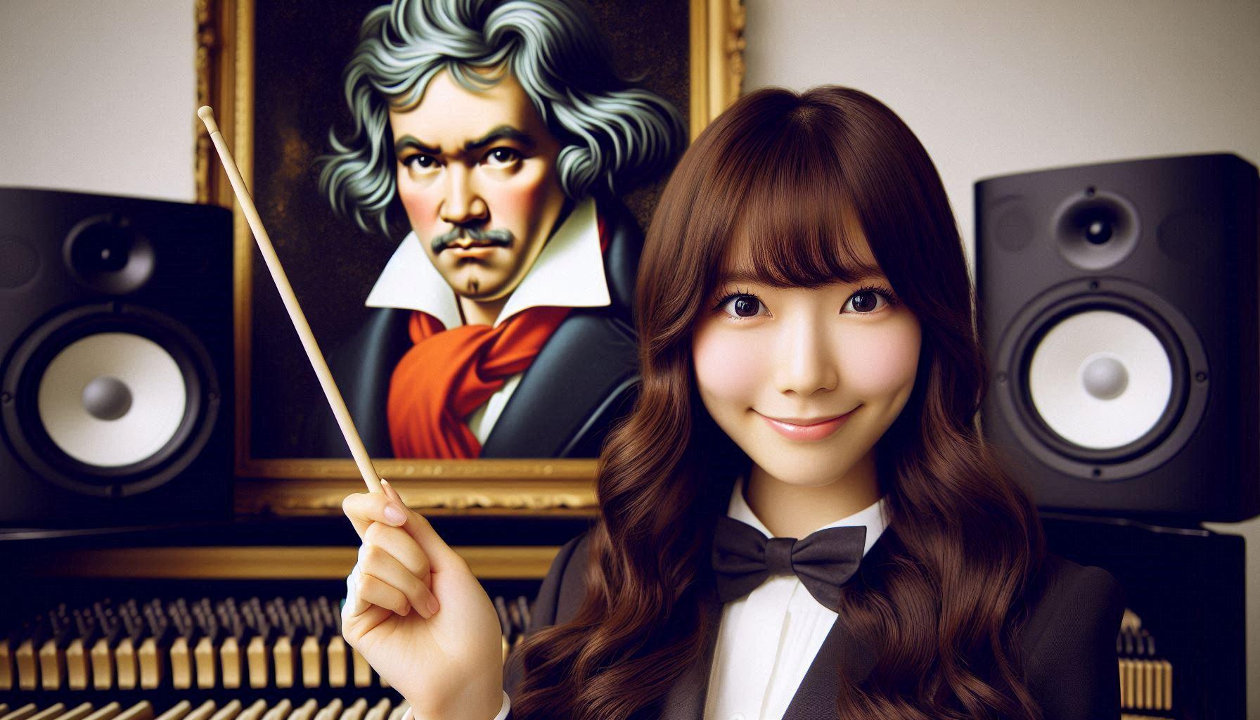 ベートーベンの音楽を聴きながら指揮棒を振って、指揮者になったつもりの萌ちゃん。