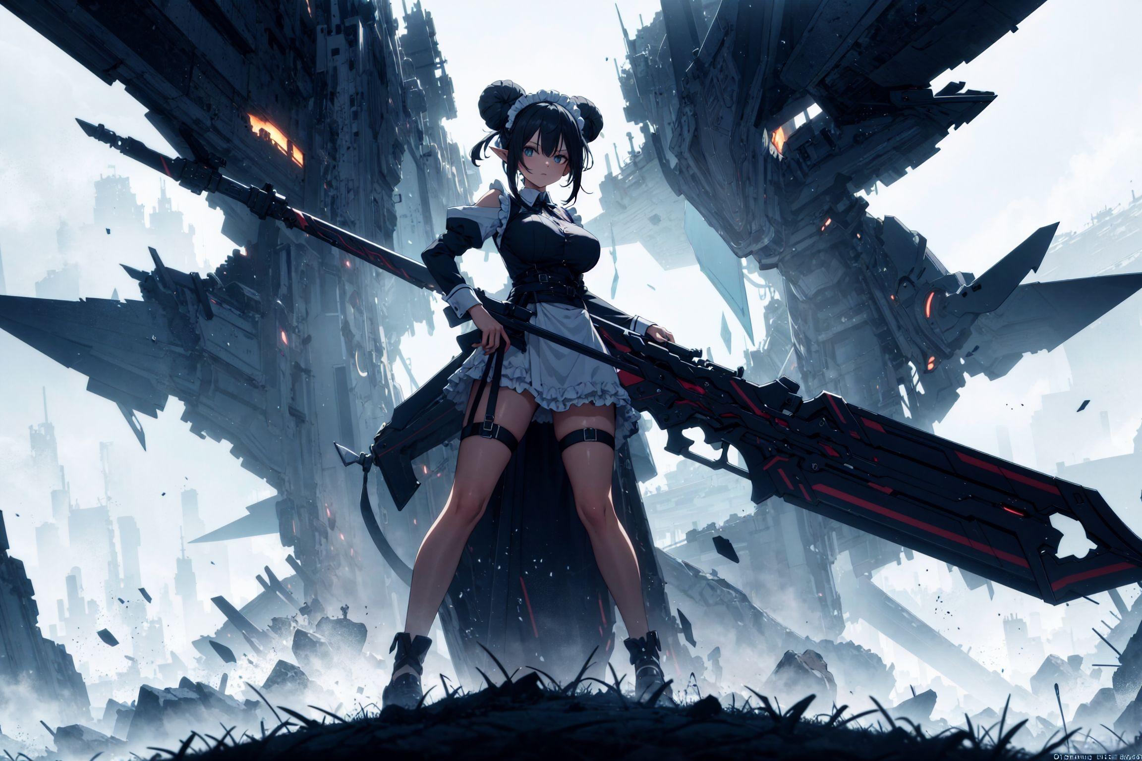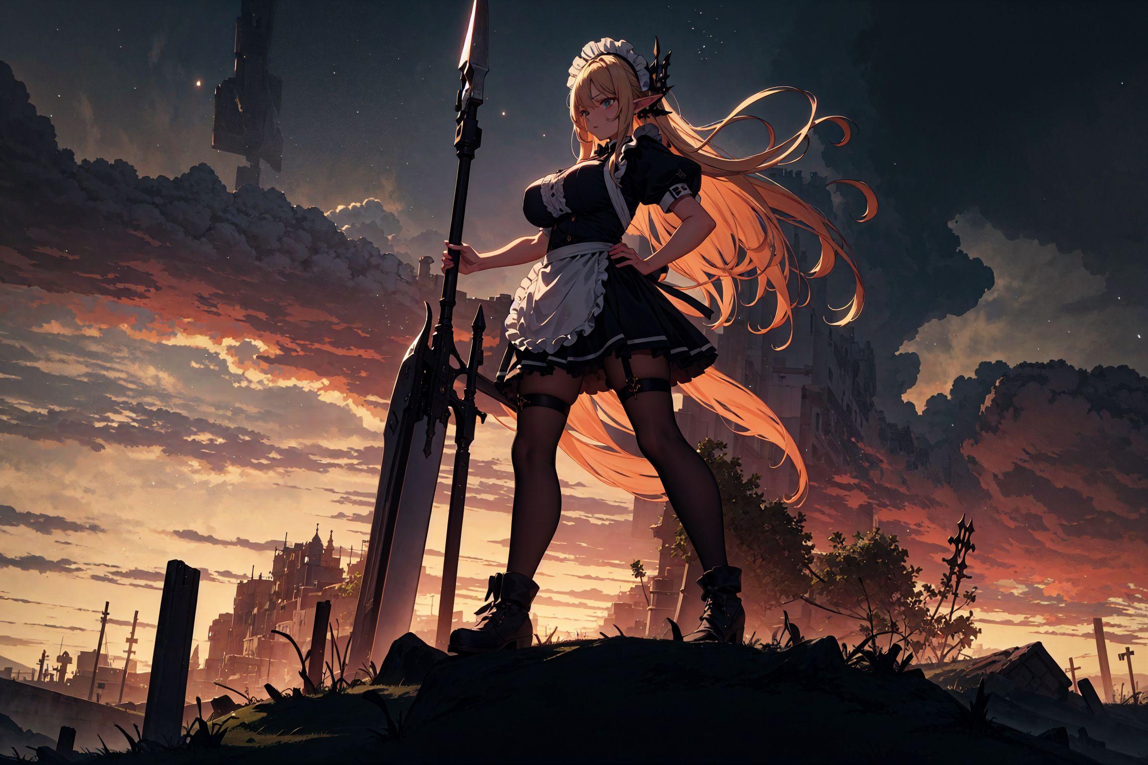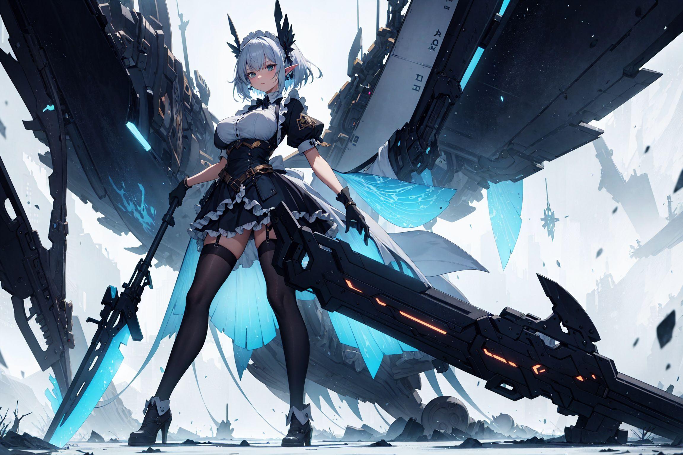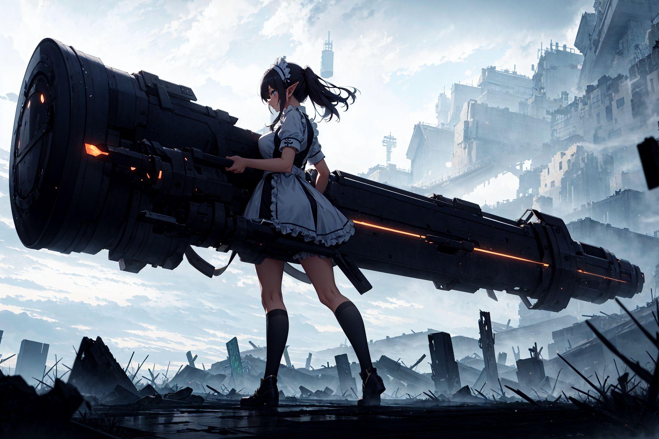 Steps: 25, Sampler: DPM++ 2M SDE Karras, CFG scale: 7.5, Seed: 1115873022, Size: 768x512, Model hash: 35b1f8b825, Model: ad2s, Denoising strength: 0.58, Clip skip: 2, Wildcard prompt: "hi res, heaven in maids, wielding (massive and (gigantic) 'WEAPON') her own size,\n(deformed), (aged down:1.3), large breast, cute elf girl, (looking away), (looking at another), detailed face, \natmospheric perspective, maid uniform, __expression__, __hairc__, __hairs__, white background, solo, holding weapon,\nnice hands, perfect hands,full body, pose,\n<lora:Silicon-landscape-isolation:1>", Hires upscale: 3, Hires upscaler: 4x_fatal_Anime_500000_G, Lora hashes: "Silicon-landscape-isolation: 6077cbf43340"