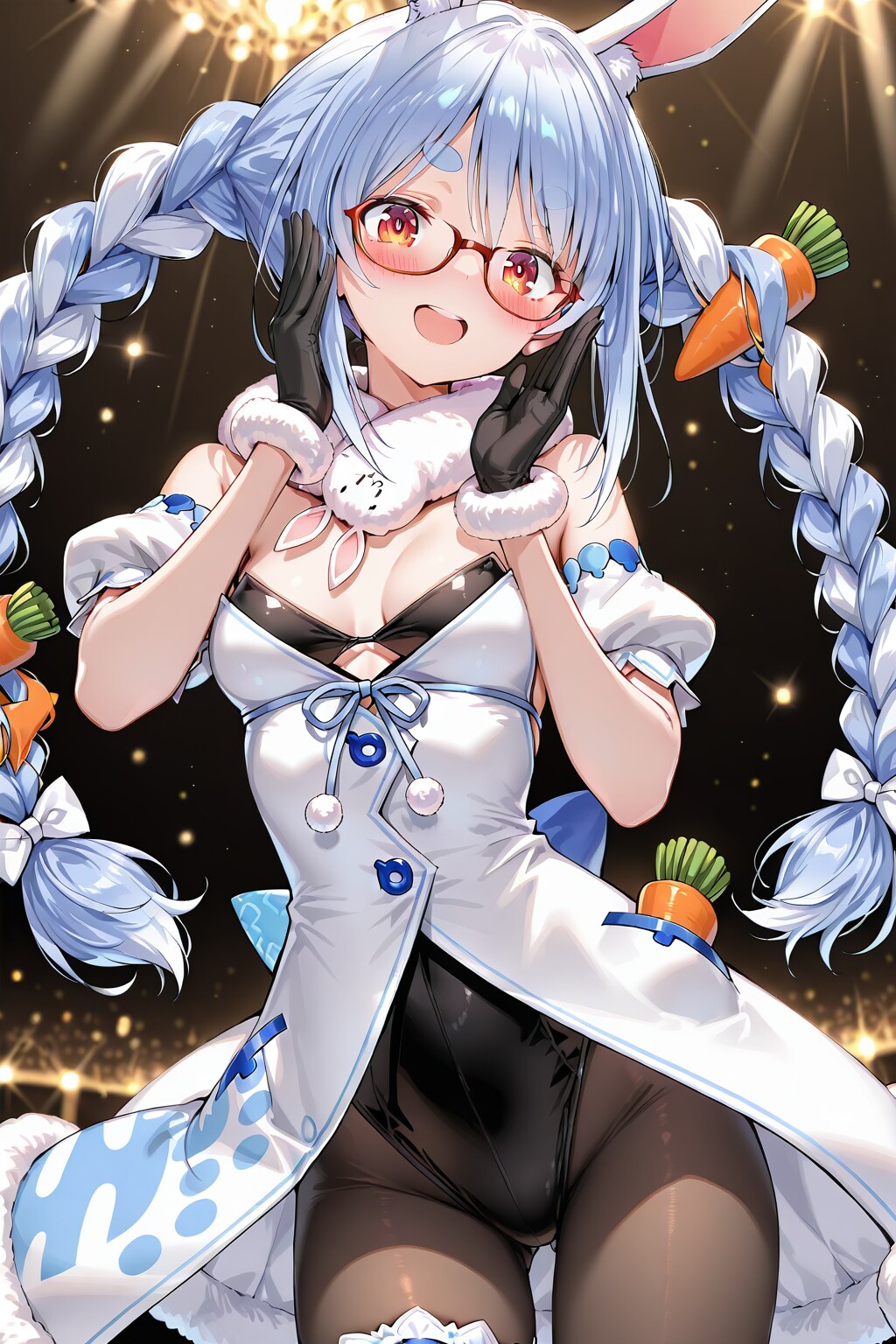 兎田ぺこら&ぺこらママも親子揃って眼鏡三つ編み