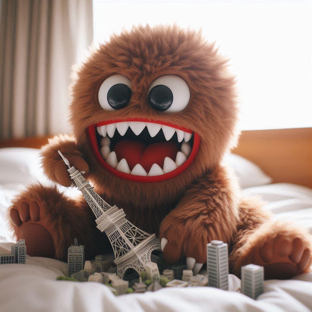 なぜかベッドの上の小さな怪獣しか描けない💦