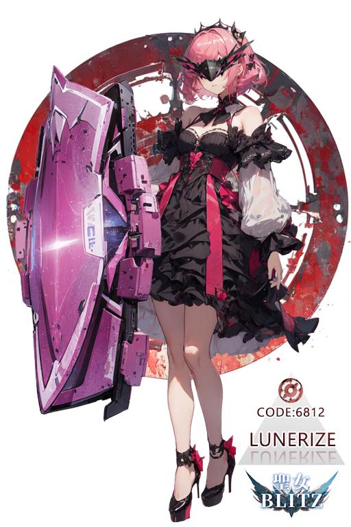 その代わり好きなアニメ作品「くりむぞん・めいど」の主人公のコスプレをしていて、盾も意匠に合わせてピンクカラーのメッキ加工を施している。