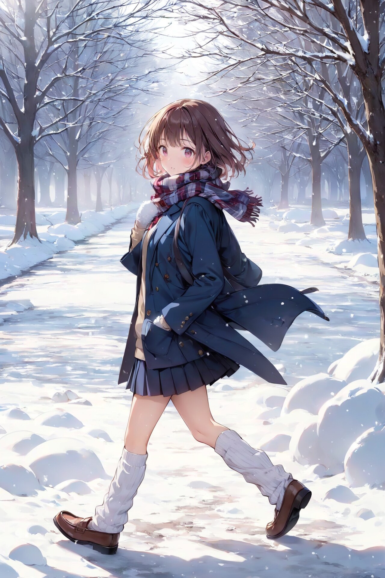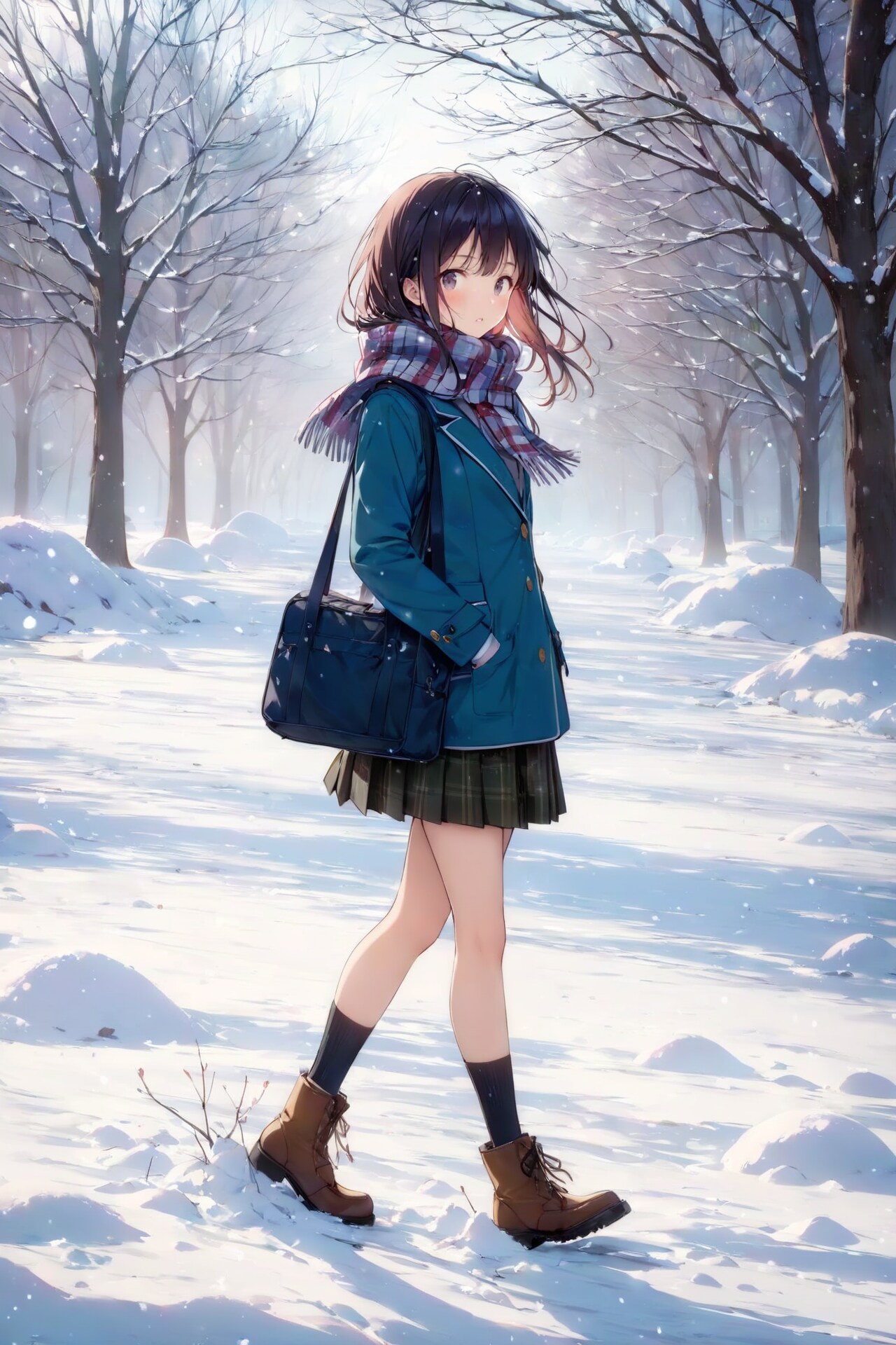 雪道を通学する学生さんたちです。