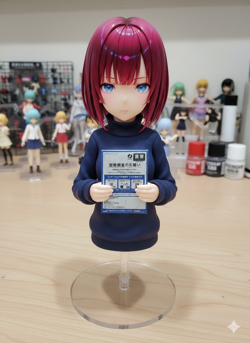 国勢調査の封筒を持ってきたリコちゃんのフィギュア