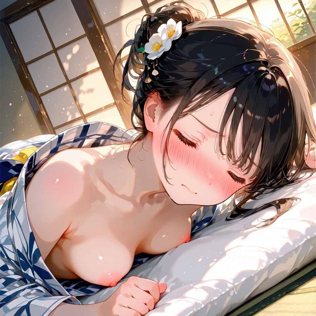 オリジナル版は家の都合で若くして嫁いだ新妻のイラストです。作中世界では嫁に行く女性は剃毛する、という設定にしたので無毛になってます。