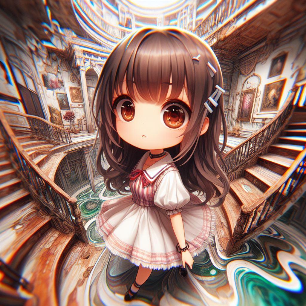 歪んだ壁や階段を眺めていると、いつの間にか身体が小さくなっていることに気が付いた。