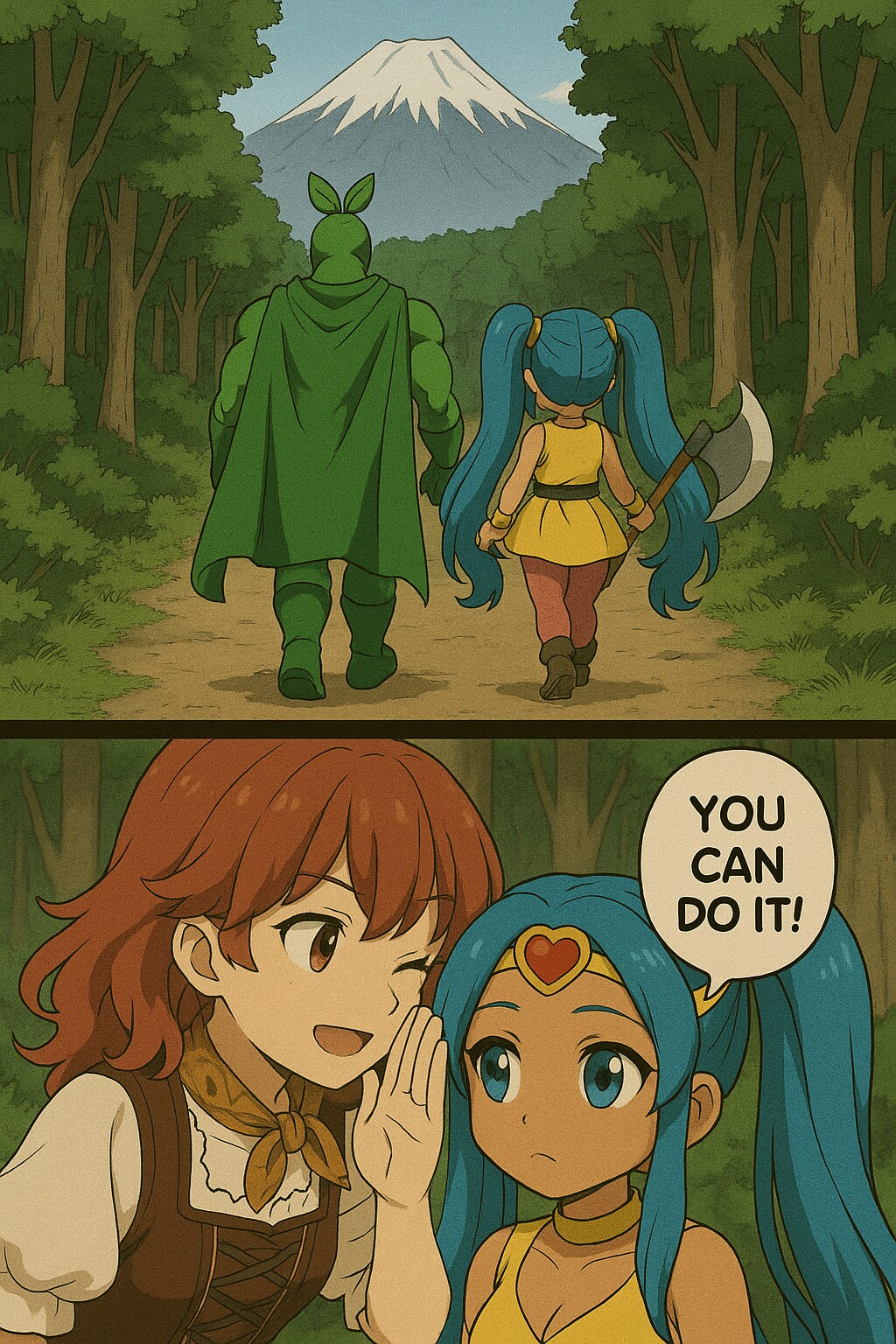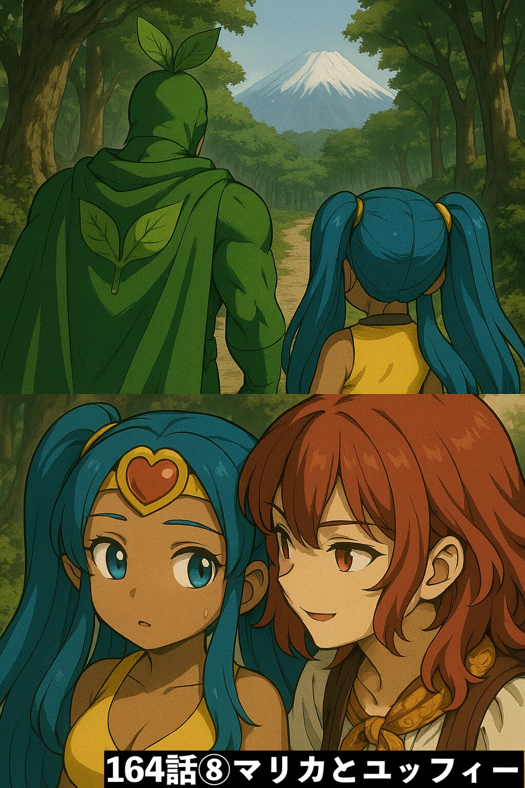 前を歩く、オレガノとユッフィーの背中を見るマリカ。