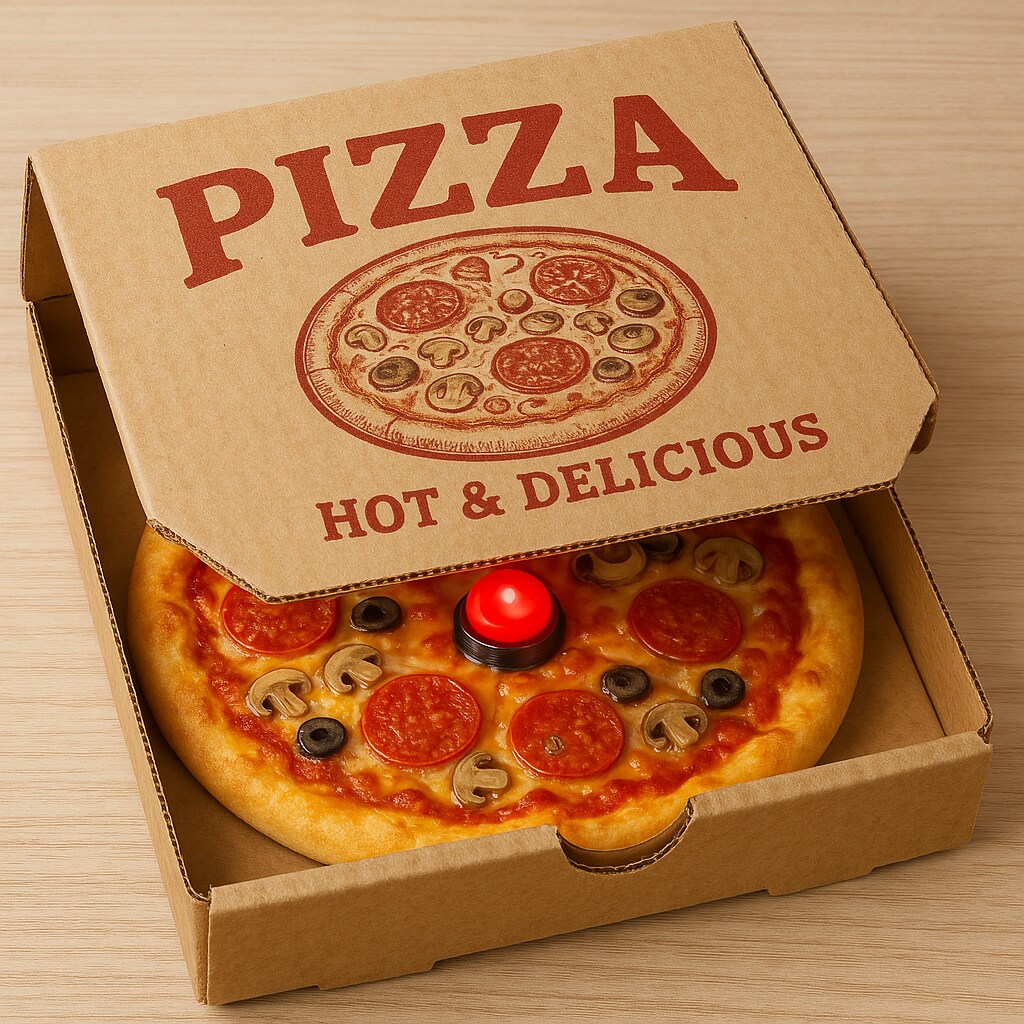 ピザの箱ってあのボタン演出にちょうどいいなーと思ったー