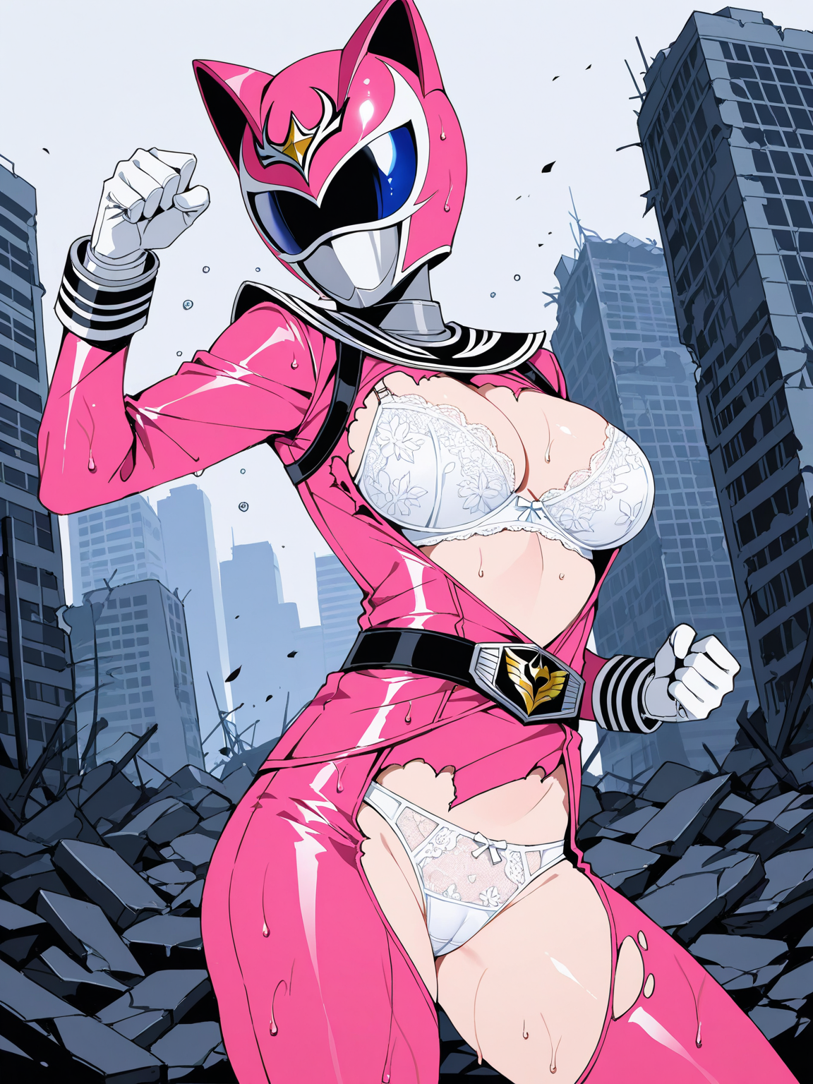戦闘中にスーツが破れて下着が!