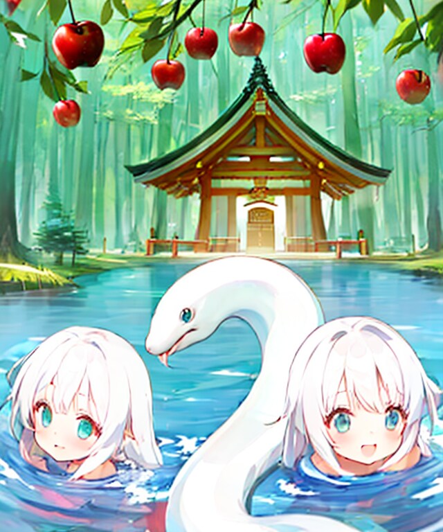 聖なる湖で遊ぶ許可をいただいたエルフたちは、大はしゃぎで泳ぎました!