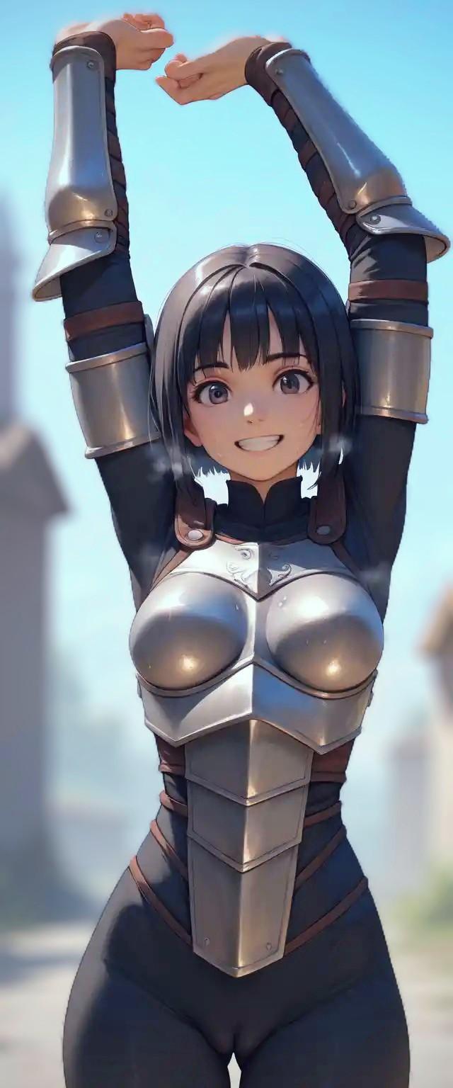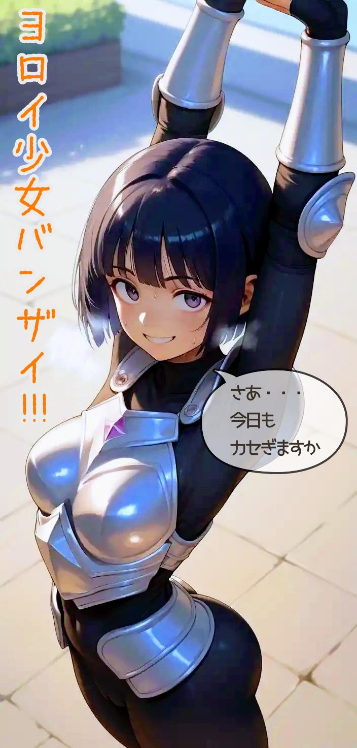 朝日まぶしい光の中 ダンジョンに入る前の冒険者少女の背伸び + イキりセリフ ってカンジの設定です💦