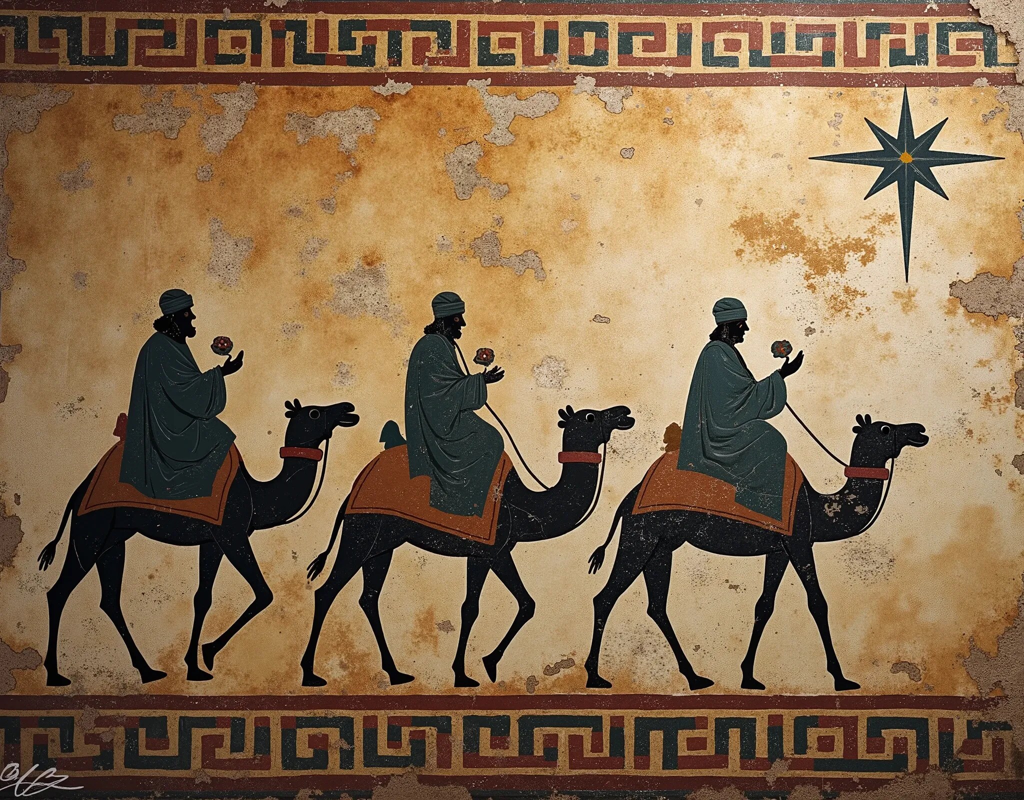 星に導かれ、誕生した救い主に会いに行く東方の三博士