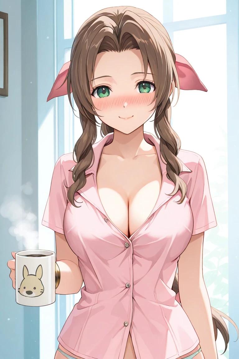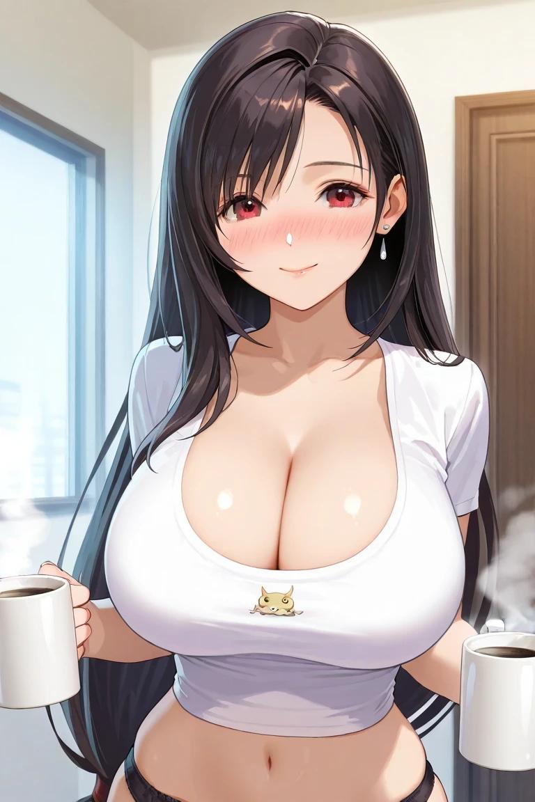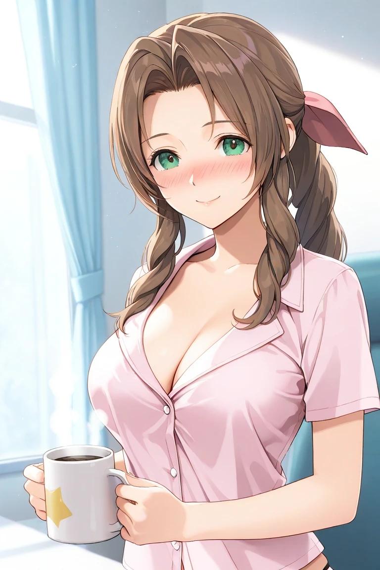 FF7の女性キャラと朝のコーヒーを飲む。これって、朝チュン?