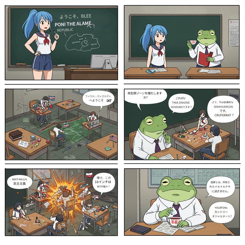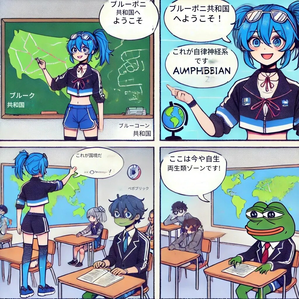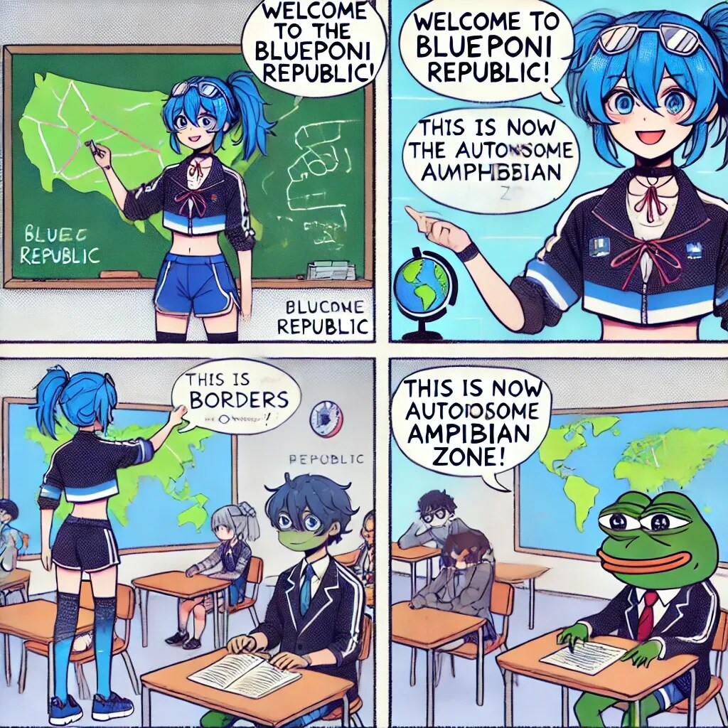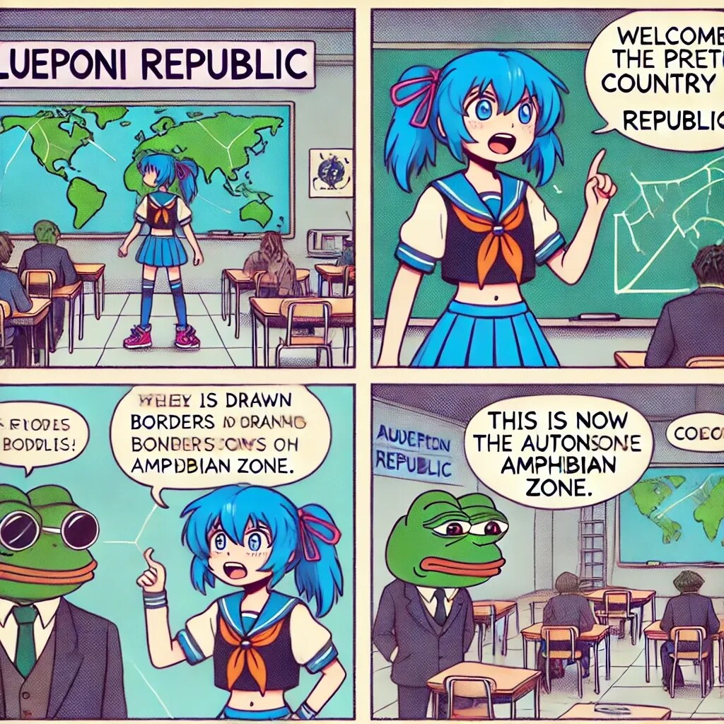青ぽに:「よし、名前は“青ぽに共和国”でどうかな?」