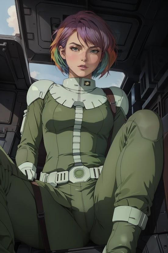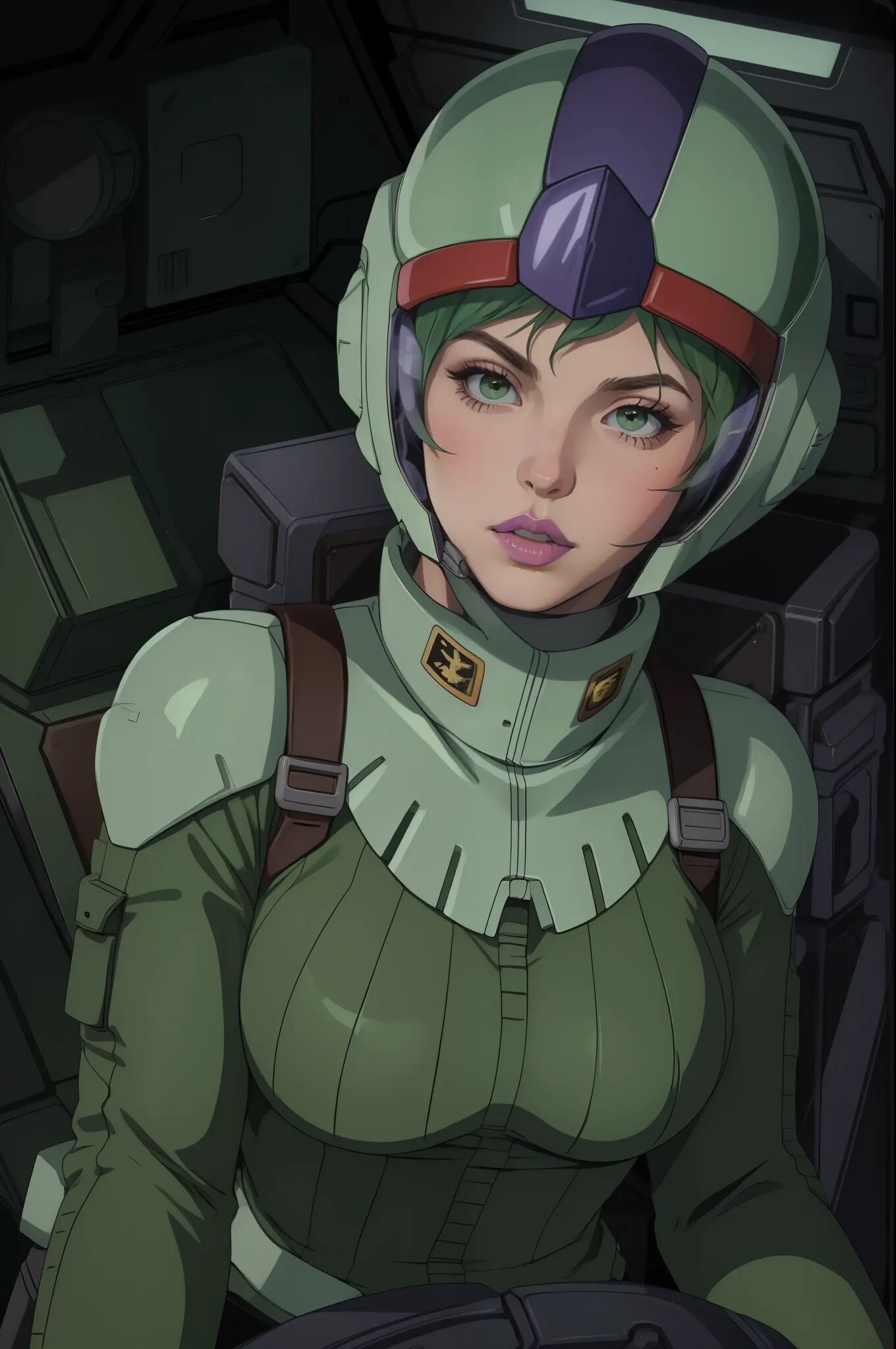 ジオン軍の女性兵士、ヘルメットはどうしても不自然になってしまう💦