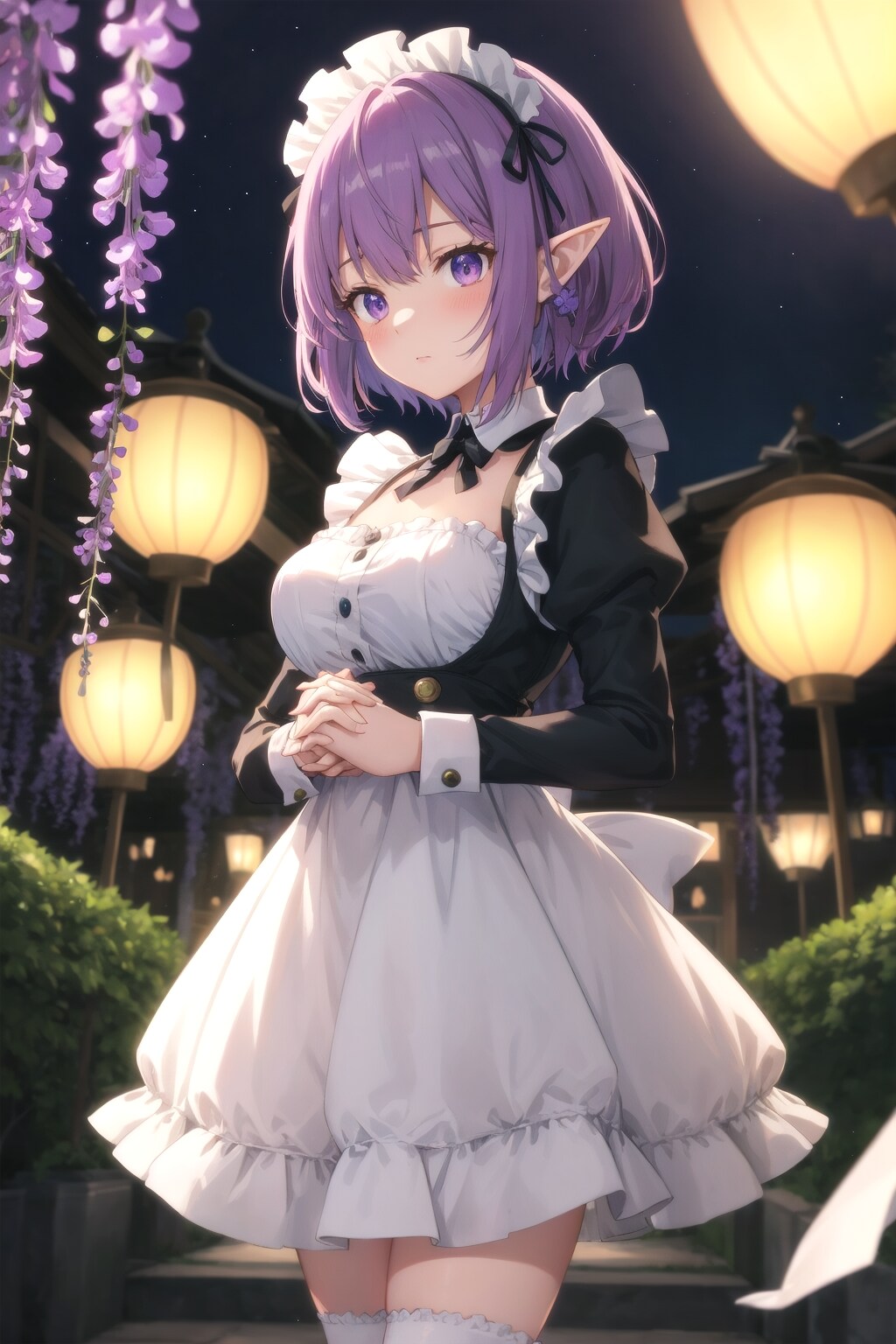 ライトに浮かぶ紫の髪と瞳が、夜の藤棚の幻想と溶け合って、息をのむほど綺麗だった。