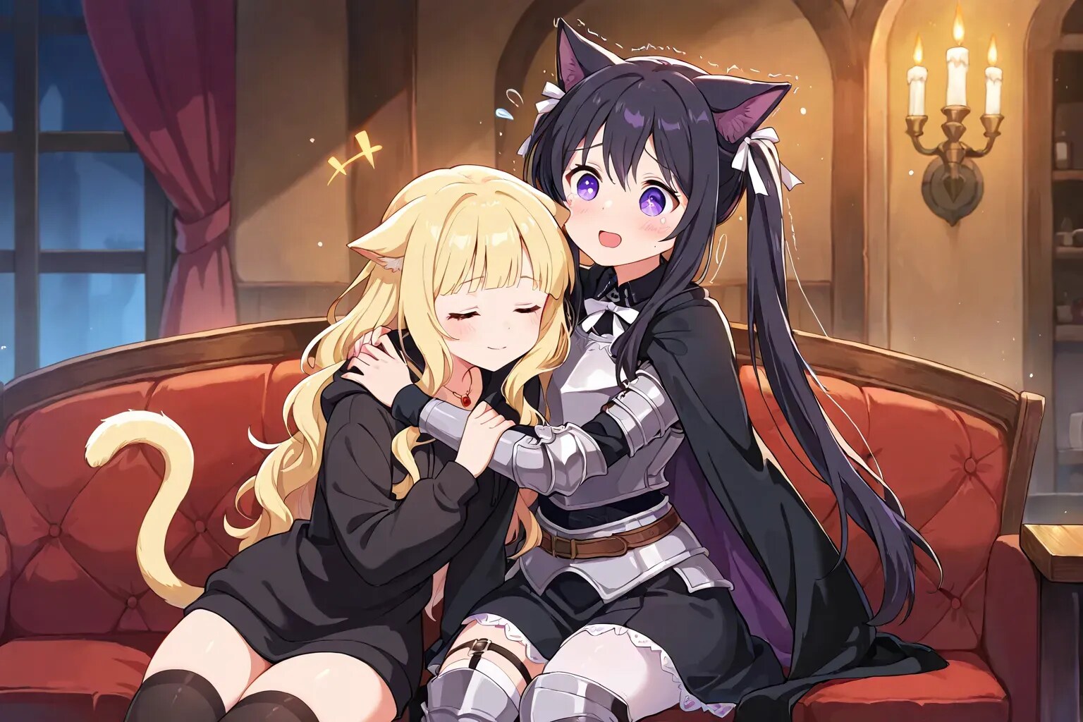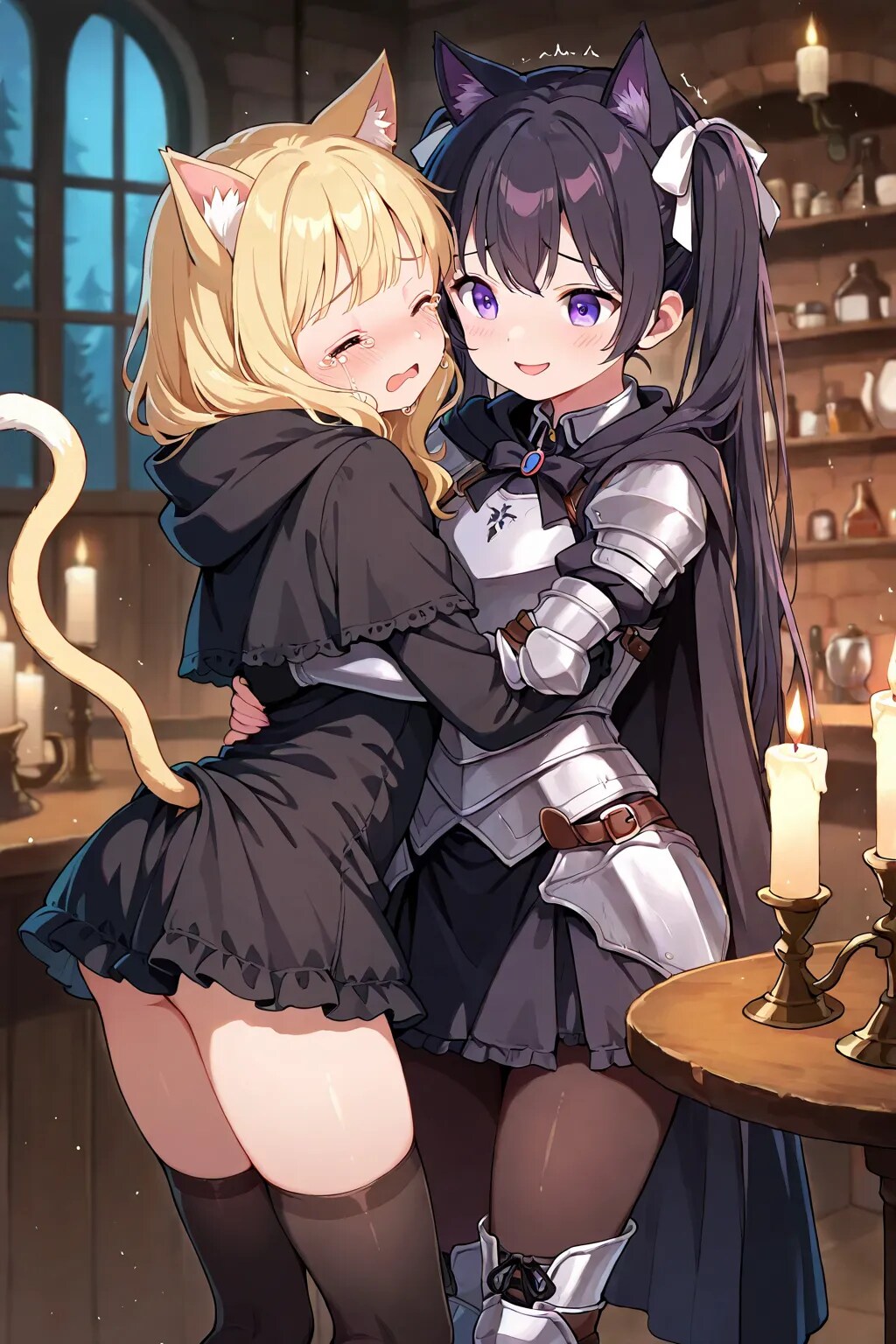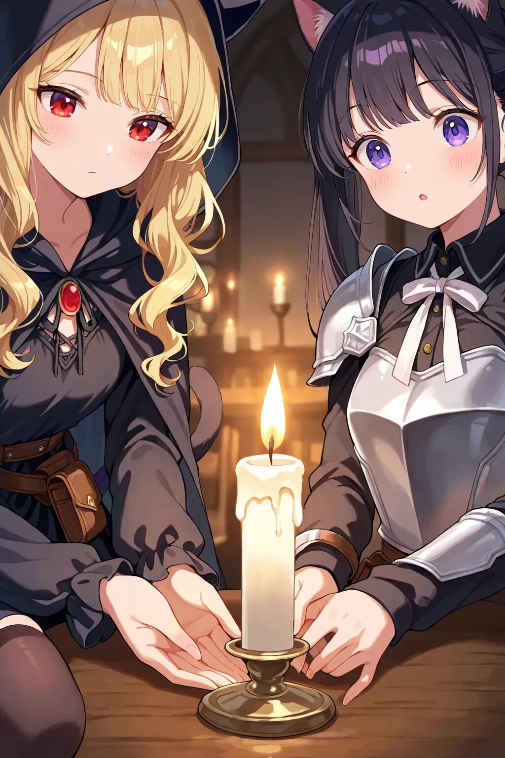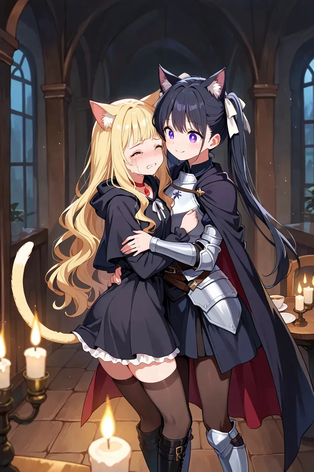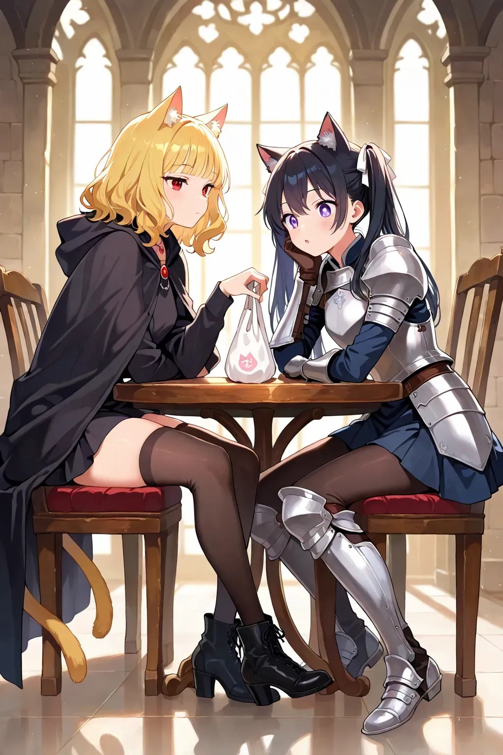 最後の目的を果たし、私はある人を待っていた。 魔王軍カフェの片隅。蝋燭の光に照らされたテーブルの前に、黒猫騎士──カペラニカが現れる。