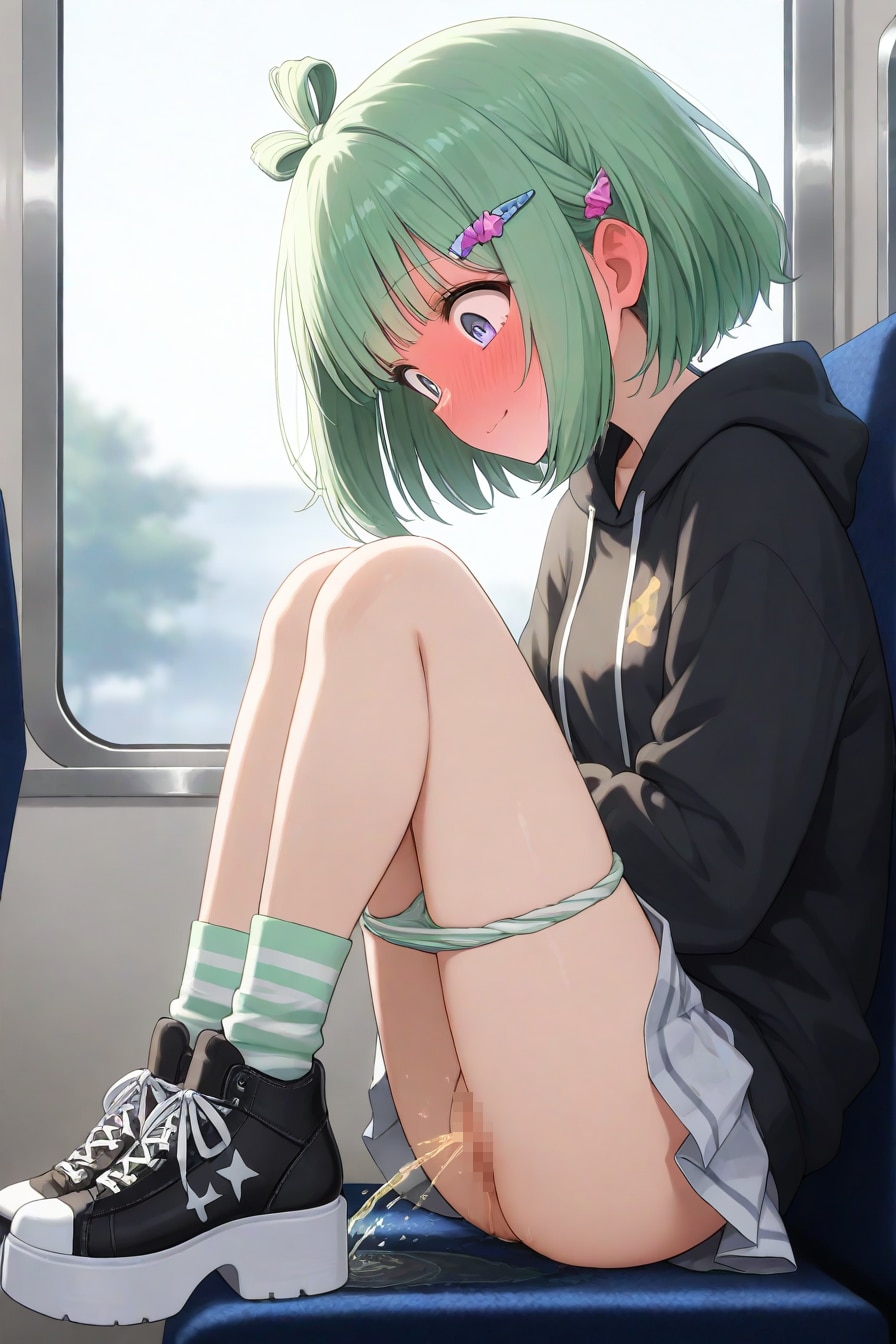(あぁっ!床に…!!前の席におしっこが流れて…ばれちゃう!!)