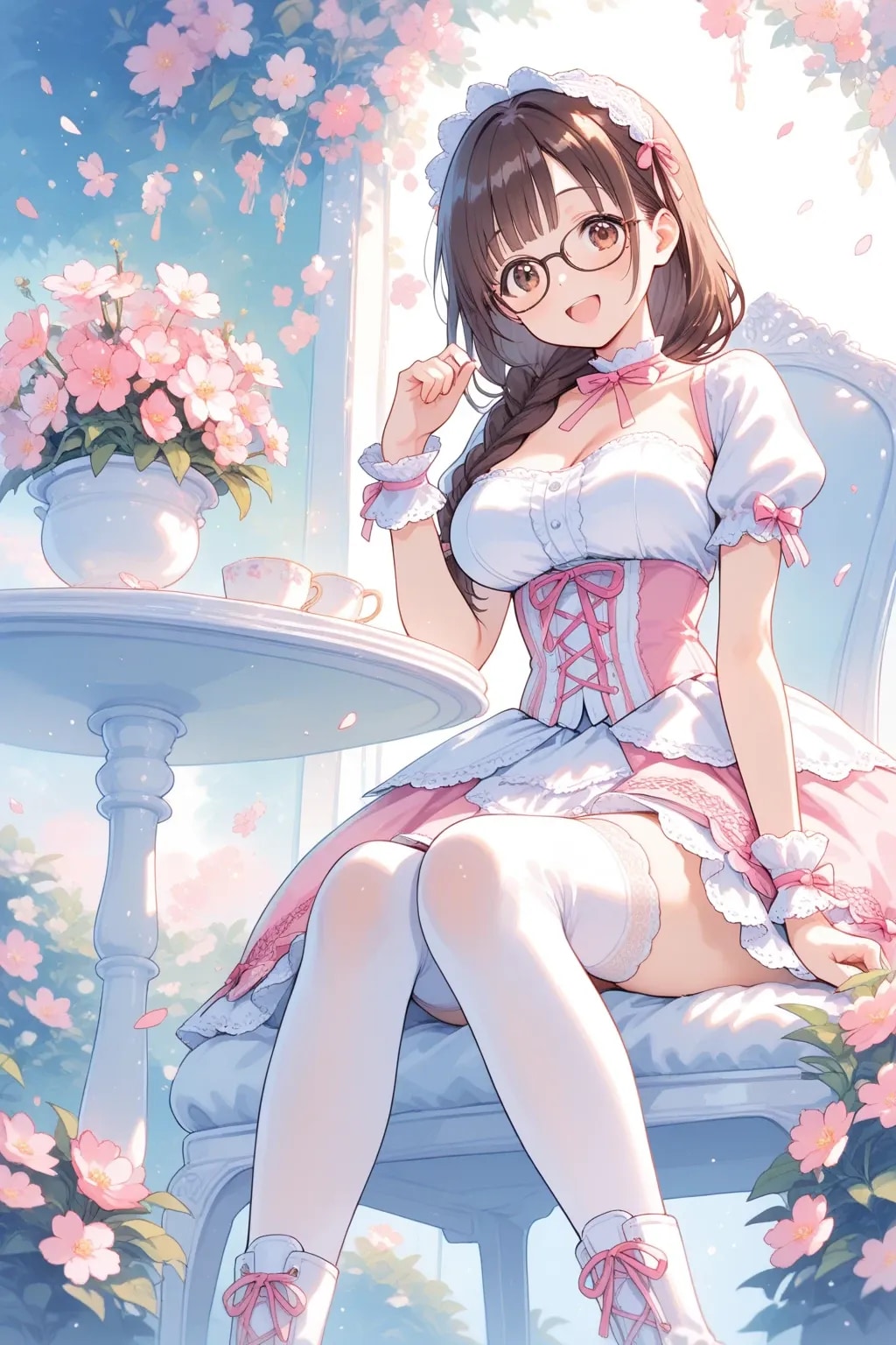 春の柔らかな日差しの中、舞ちゃんはお気に入りのカフェテラスで、桜の花びらが舞うのを眺めながら紅茶を楽しんでいた。新しく買ったピンクのリボンが春風にふわりと揺れて、舞ちゃんはちょっとだけ得意げに笑う。