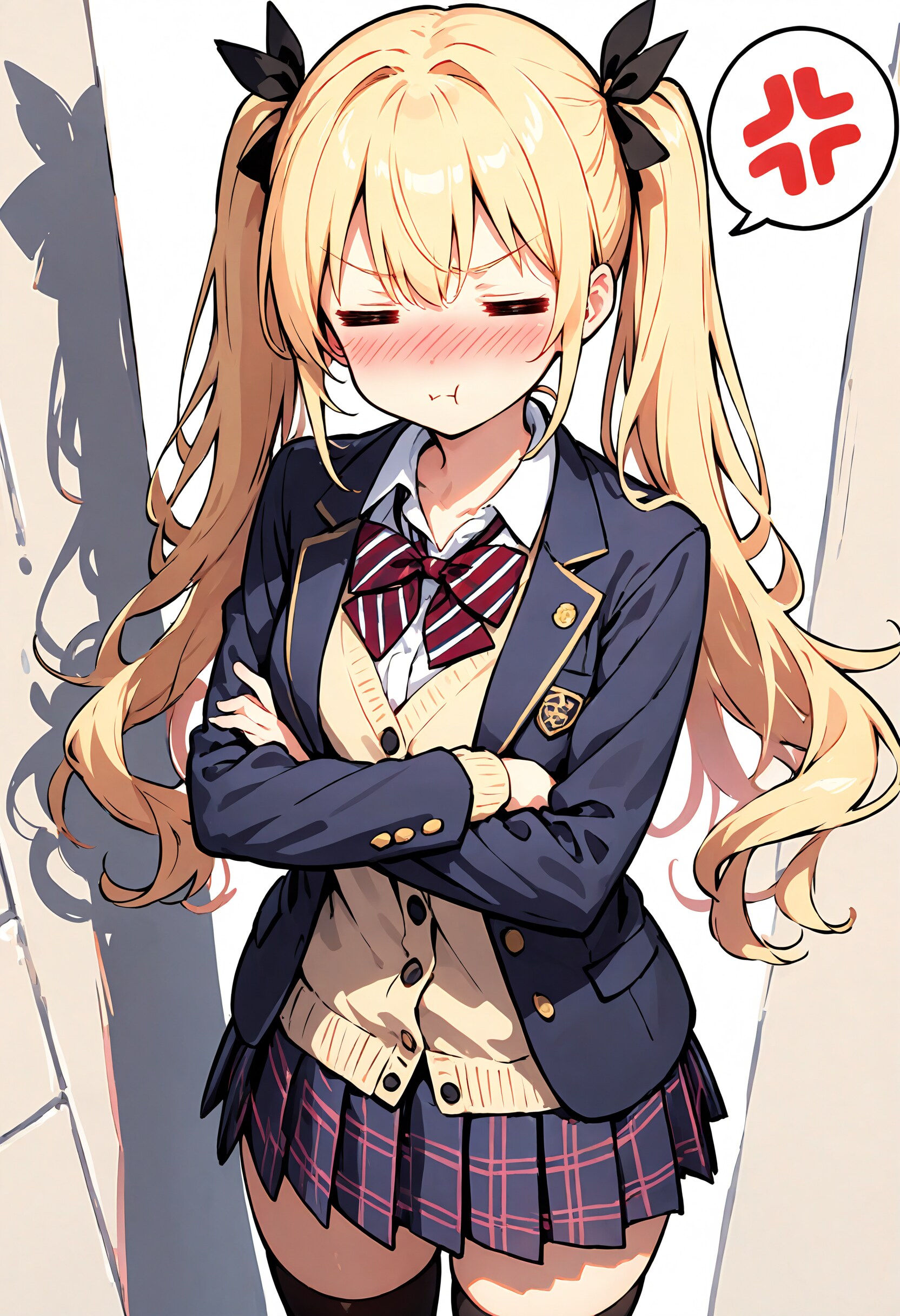 = =, :t, spoken anger vein, crossed arms, nose blush,