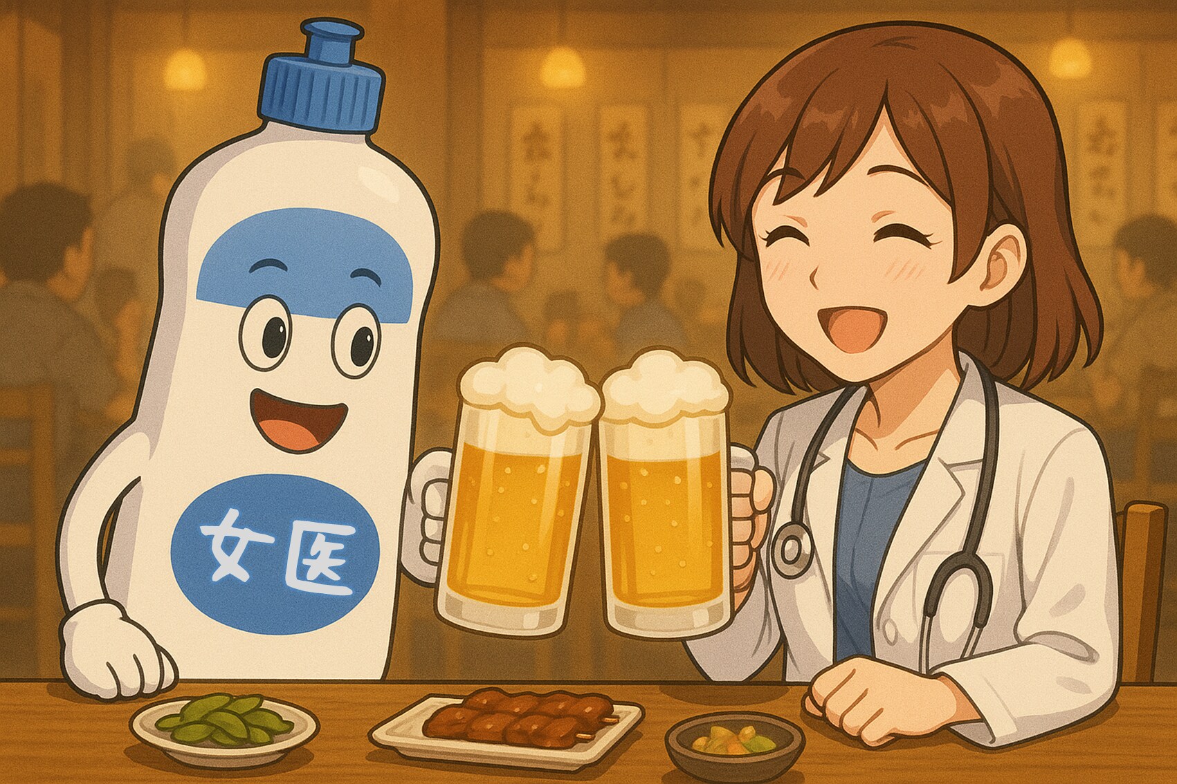 金曜日の夜、居酒屋で仲良く飲む二人