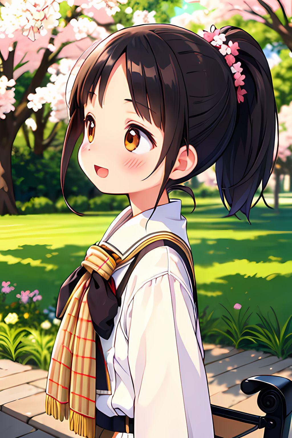 女の子はいつもの黒髪ポニーの茶瞳っ娘(お目々奇麗・loli・マスピ外しVer)