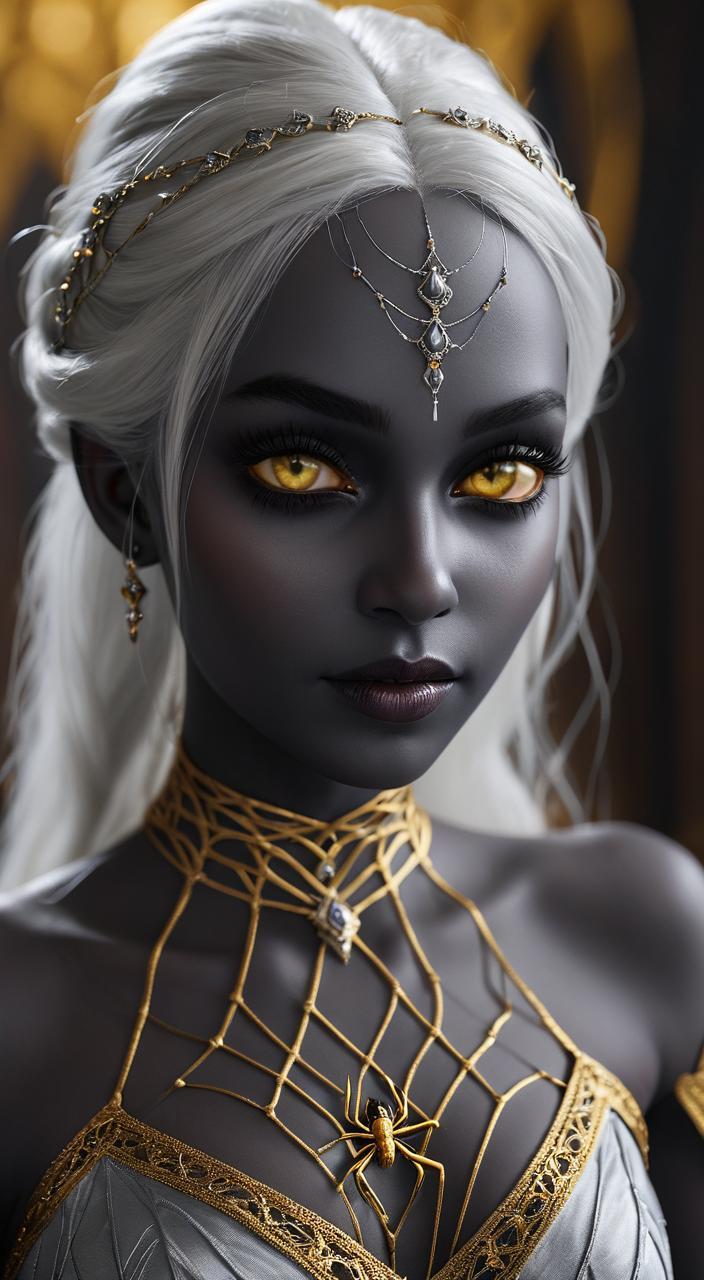 A drow women. Maybe a sorceress or a priest.