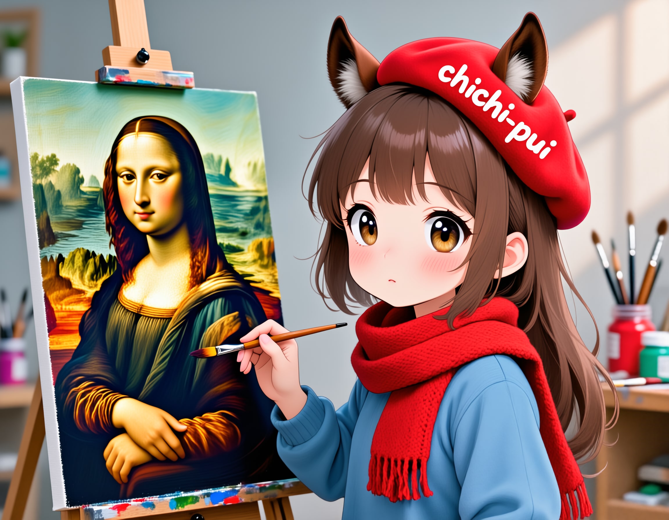 帽子の文字は完璧だったし題材の絵画も綺麗に出るけれど「元の絵画にウマ耳付けて」などのプラスαはダメでした。それらもプロンプト次第かもしれませんが…
