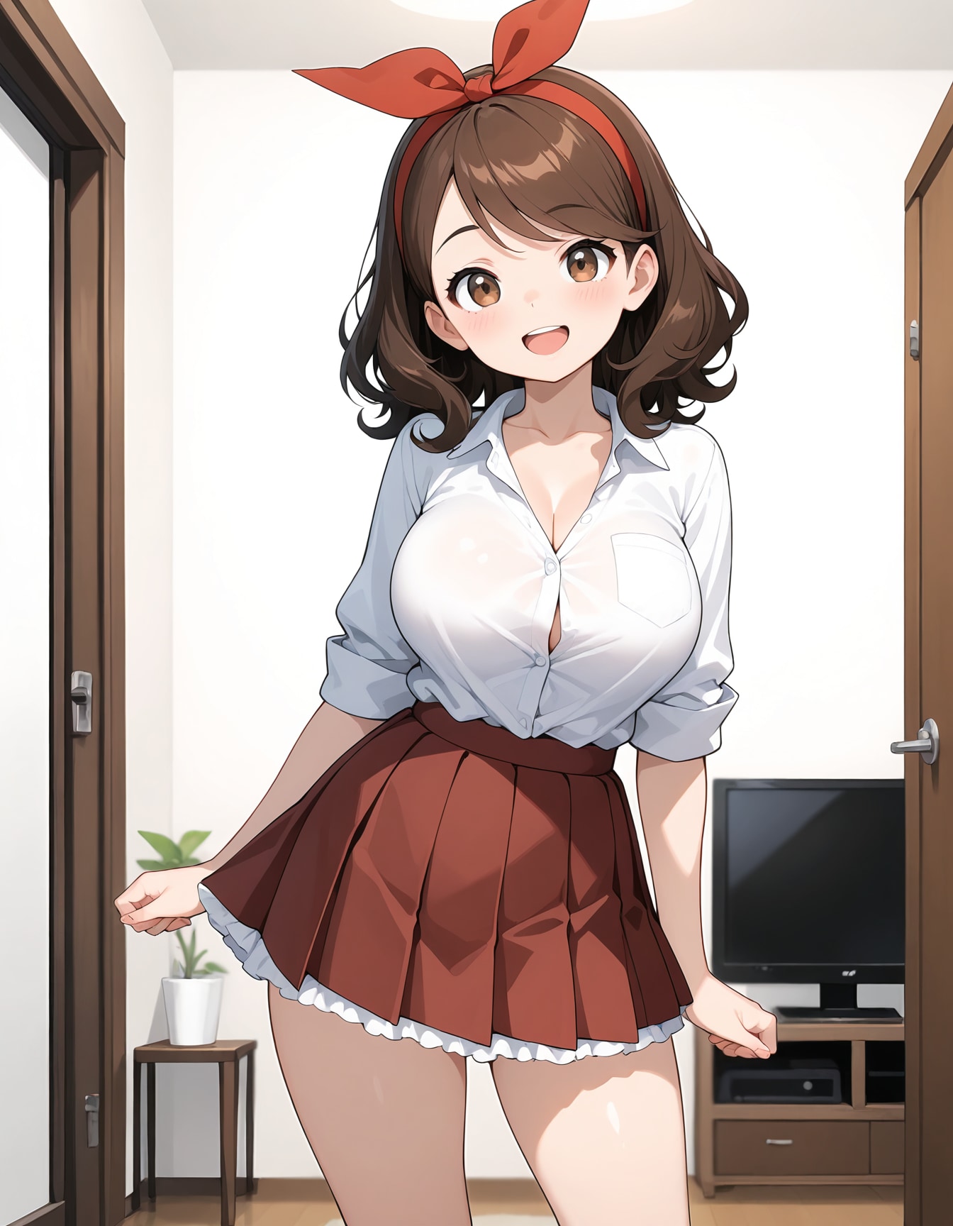 red hairband, top tied huge ribbon,