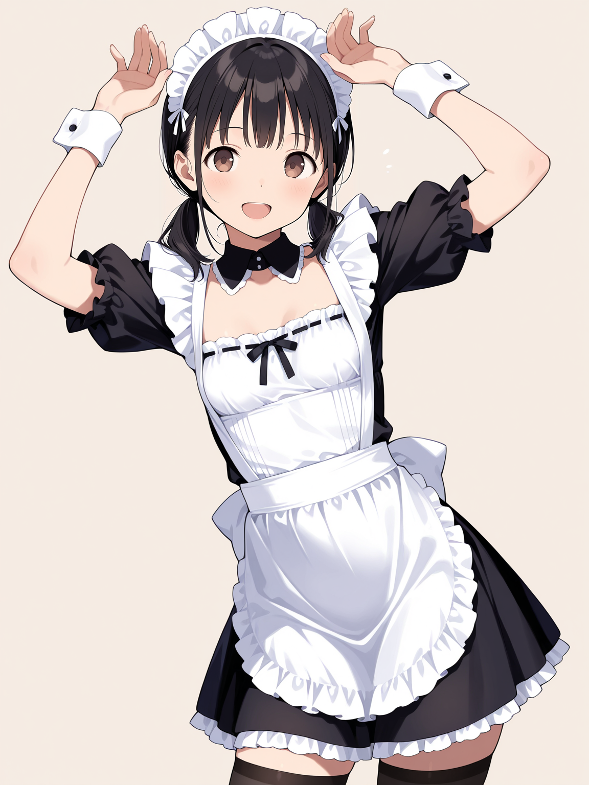 1girl,(japanese girl),early teen,round face,black hair,low twintails,wispy bangs,brown eyes,no_pupils,(tareme:0.5),small_breasts